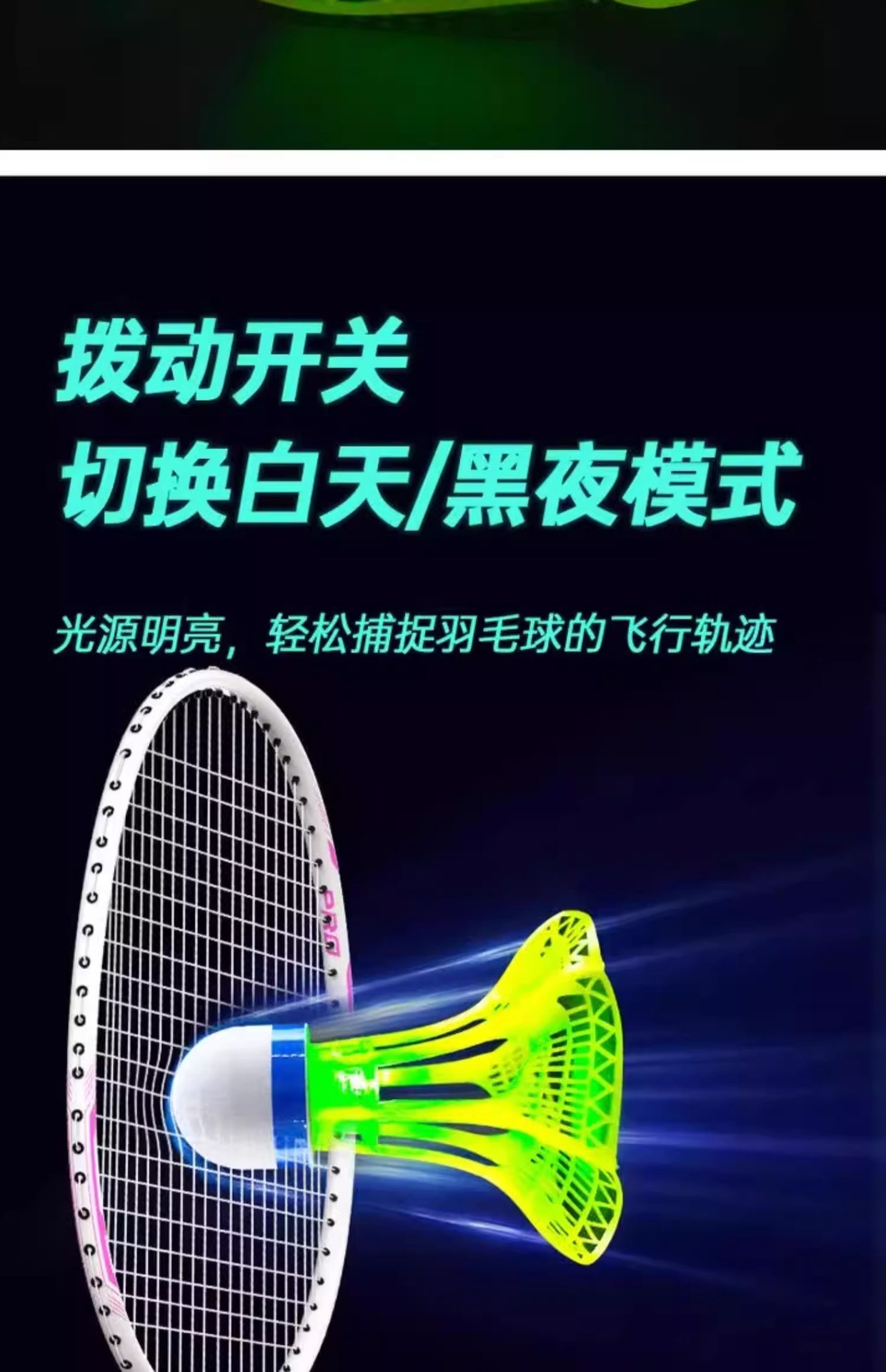 光るバドミントンの夜は屋外の防風ボールでプラスチックゴムのトレーニングボールを打つことができます。