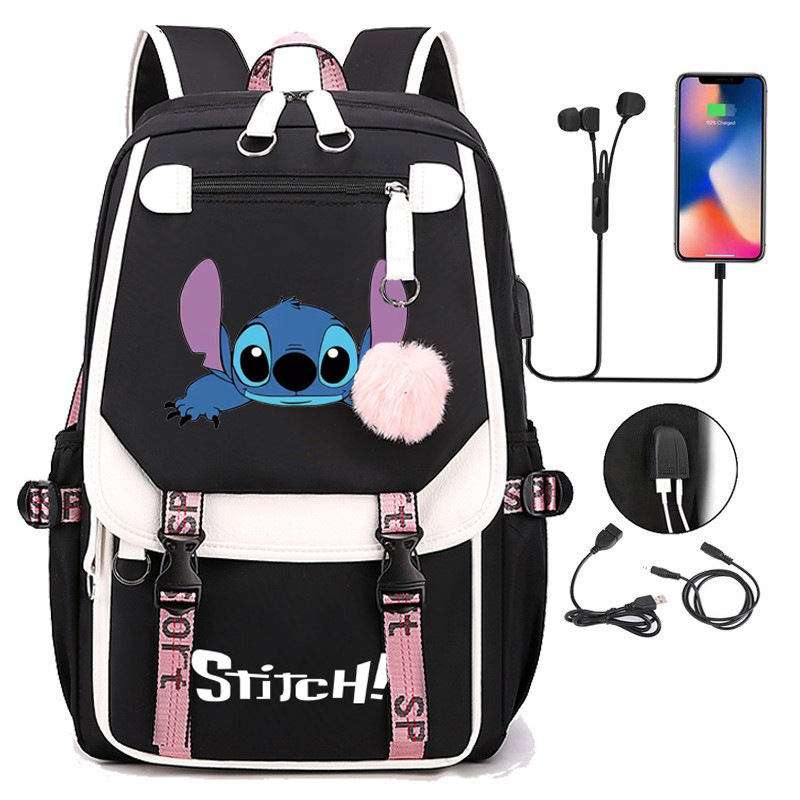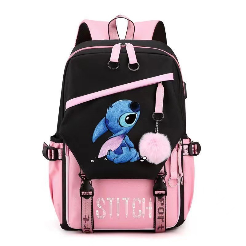 新しいクロスボーダーリロとスティッチ USB 充電スクールバッグ男性と女性の学生バックパックバックパック