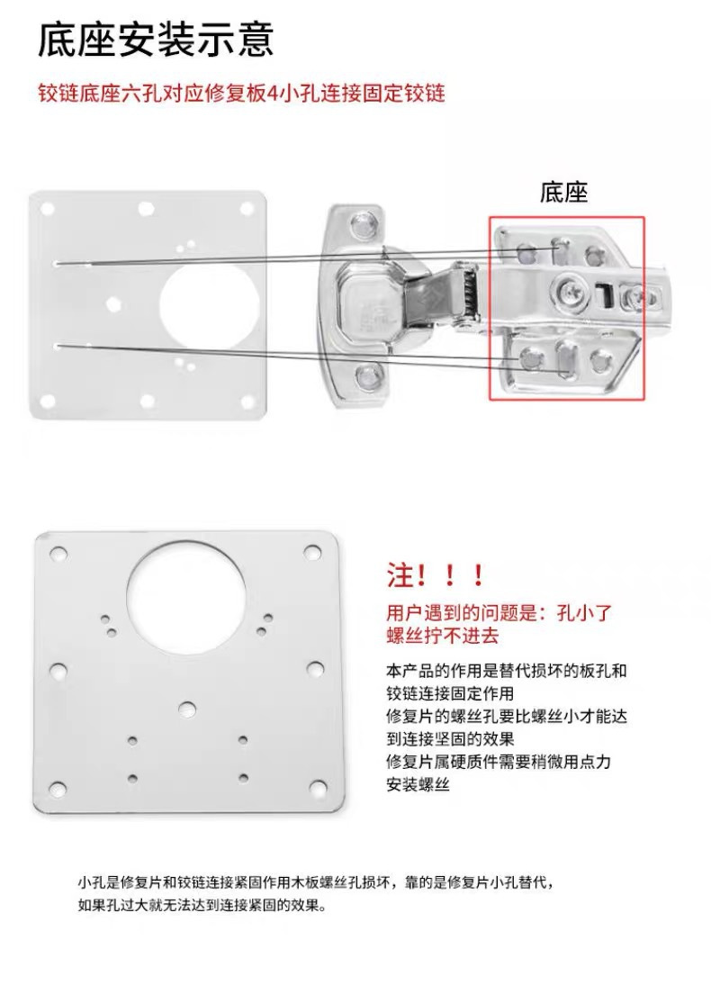 柜门修复木柜合页修复片铰链修复片不锈钢安装加固荷叶家具修复器