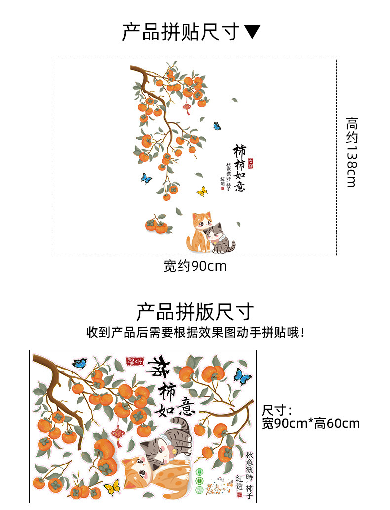 XY9162 猫柿の木玄壁装飾中国の粘着絵画リビングルームとレストラン美化装飾壁ステッカー