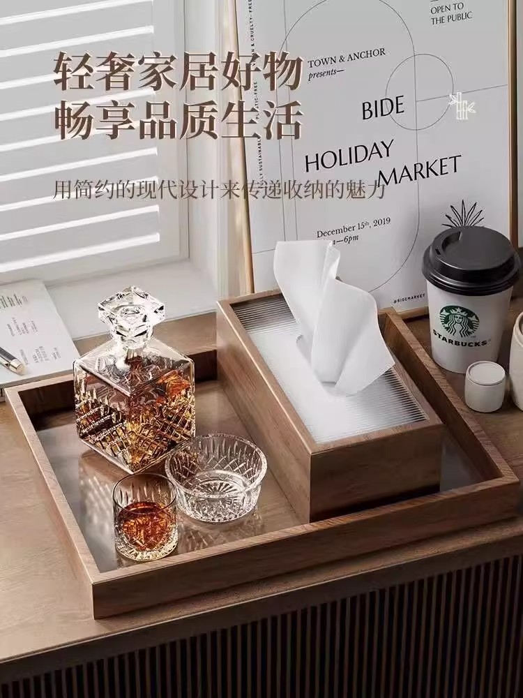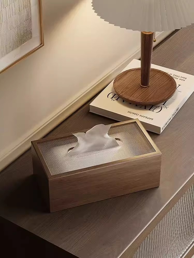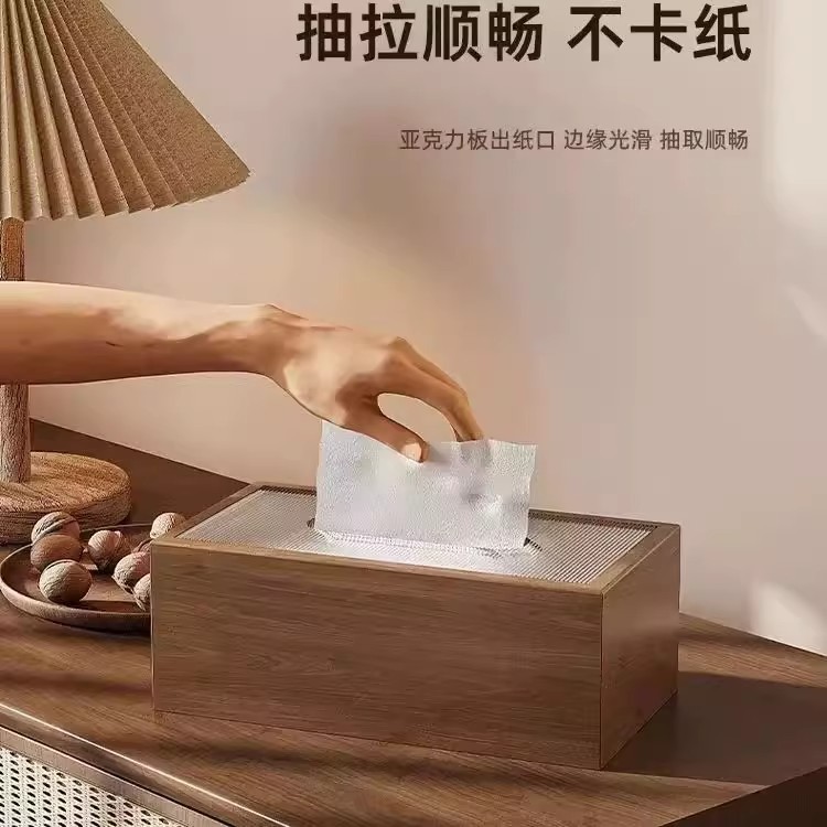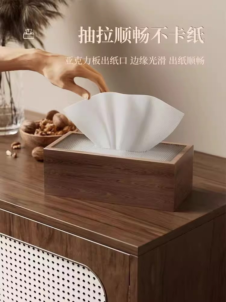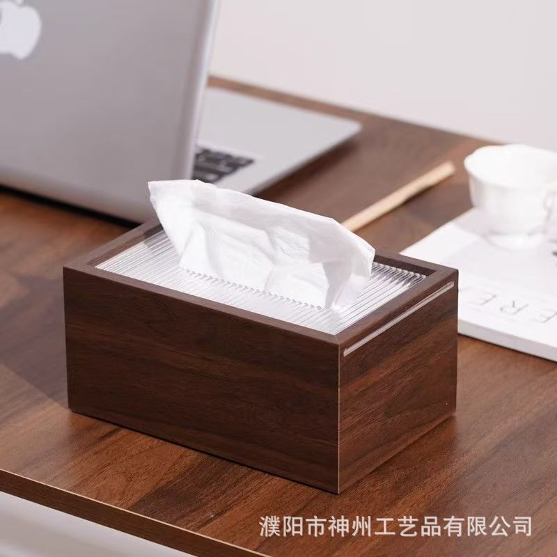 黑胡桃色纸巾盒客厅轻奢酒店纸巾盒家用中式茶几抽纸盒民宿抽纸盒