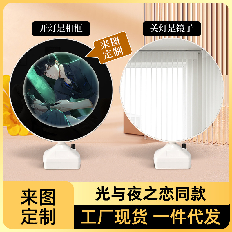 シンプルな魔鏡フォトフレームが点灯しているのはフォトフレームが消灯しているのは鏡の置物led円形ハート型クリエイティブ化粧鏡です