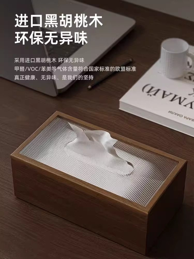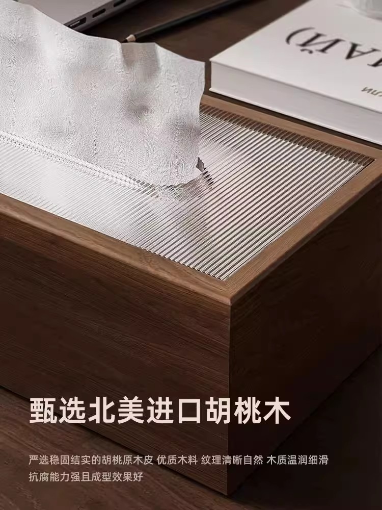北美黑胡桃木纸巾盒高级感桌面抽纸盒家用客厅办公复古风方形轻奢