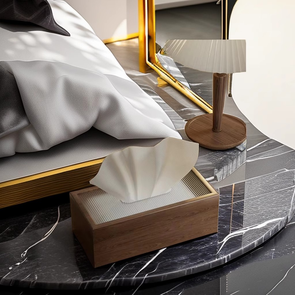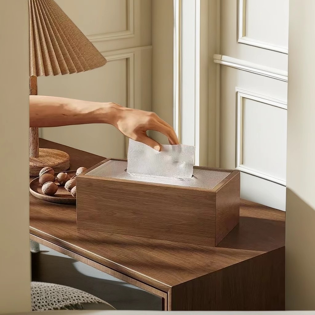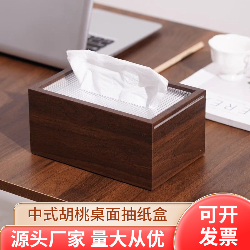 中国のクルミデスクトップペーパーボックスリビングルームライト高級コーヒーテーブル寝室オフィスティッシュボックスホテルナプキンボックス