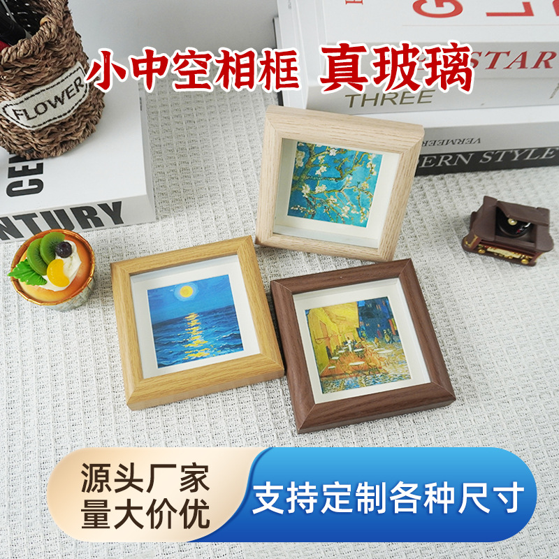 ミニ正方形手作りフォトフレーム小さくてかわいい額縁装飾品 4inch ウォールナット DIY 写真壁中空フォトフレーム