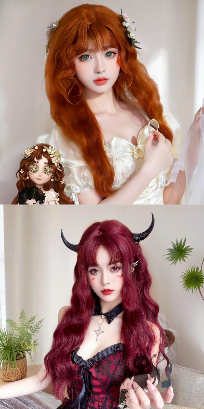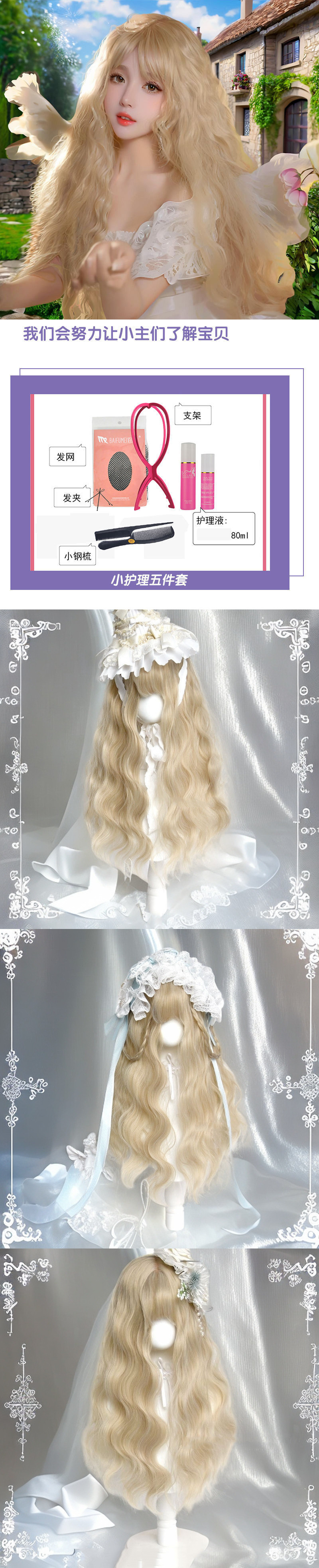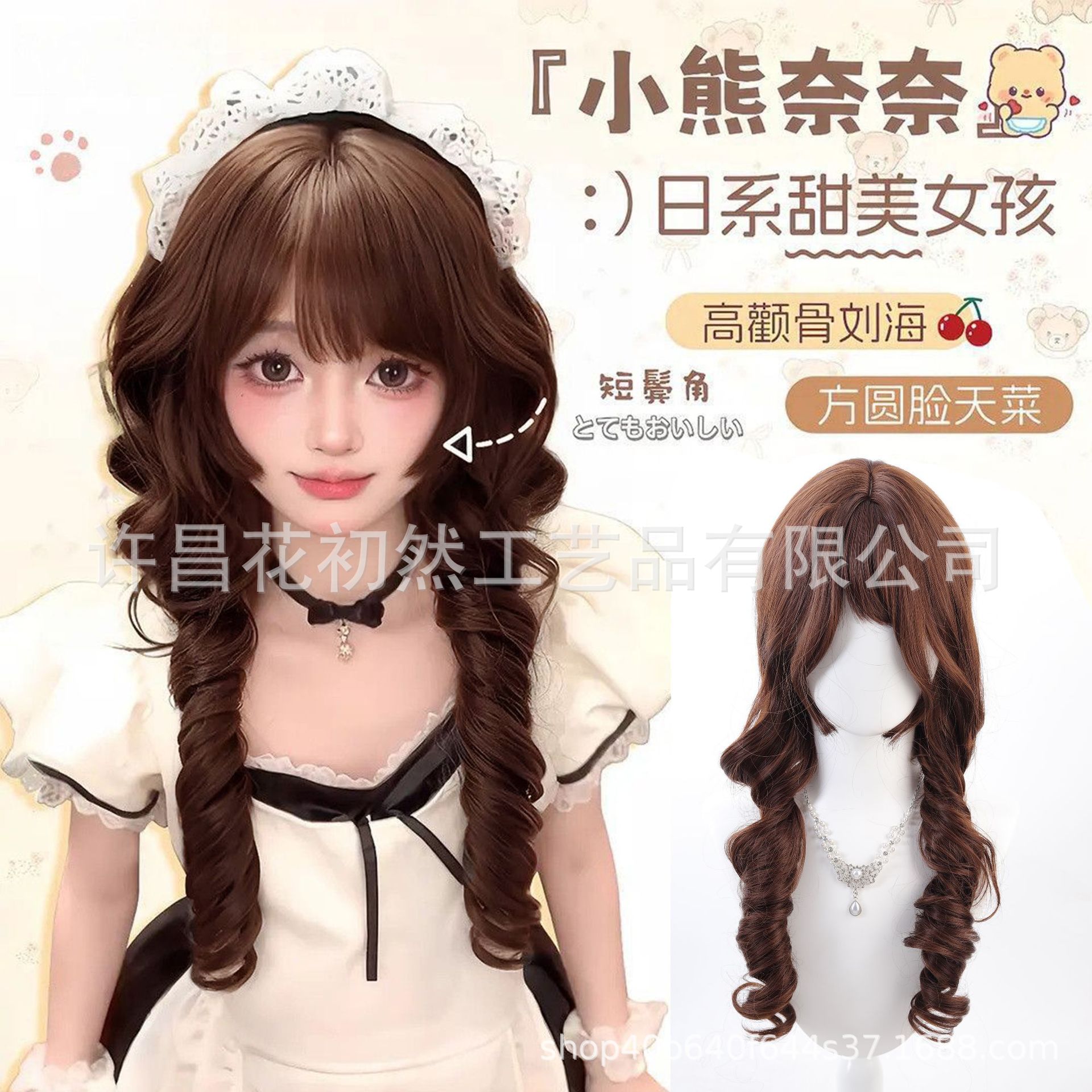 ウール小巻フェイクヘア女性ロングヘアロリータファッションナチュラル微カールデイリーパフォーマンス写真撮影フルヘッドギアスタイル