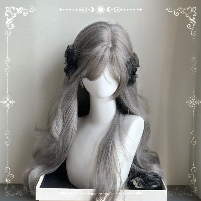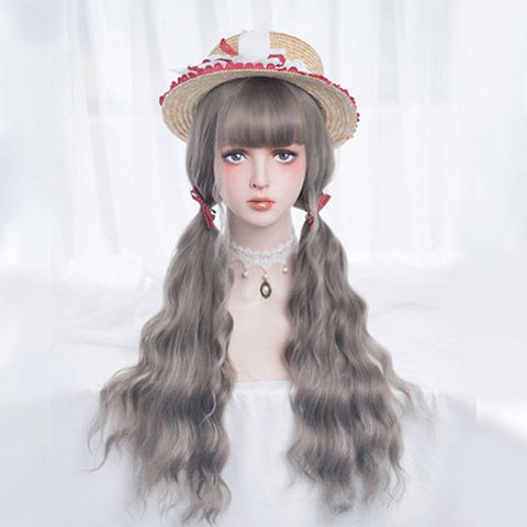 シルバーグレーの女性用ウィッグ、ロング巻き毛、JKデイリーダブルポニーテール、日本製ロリータ、かわいいコス、フルヘッドギア