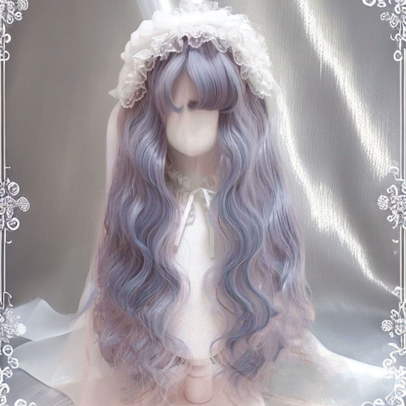 ロリータ ユニバーサルウィッグ COS ガール 日本製 オフホワイト ロリータ ロングヘア コーンパーマ ウールカール 水波紋