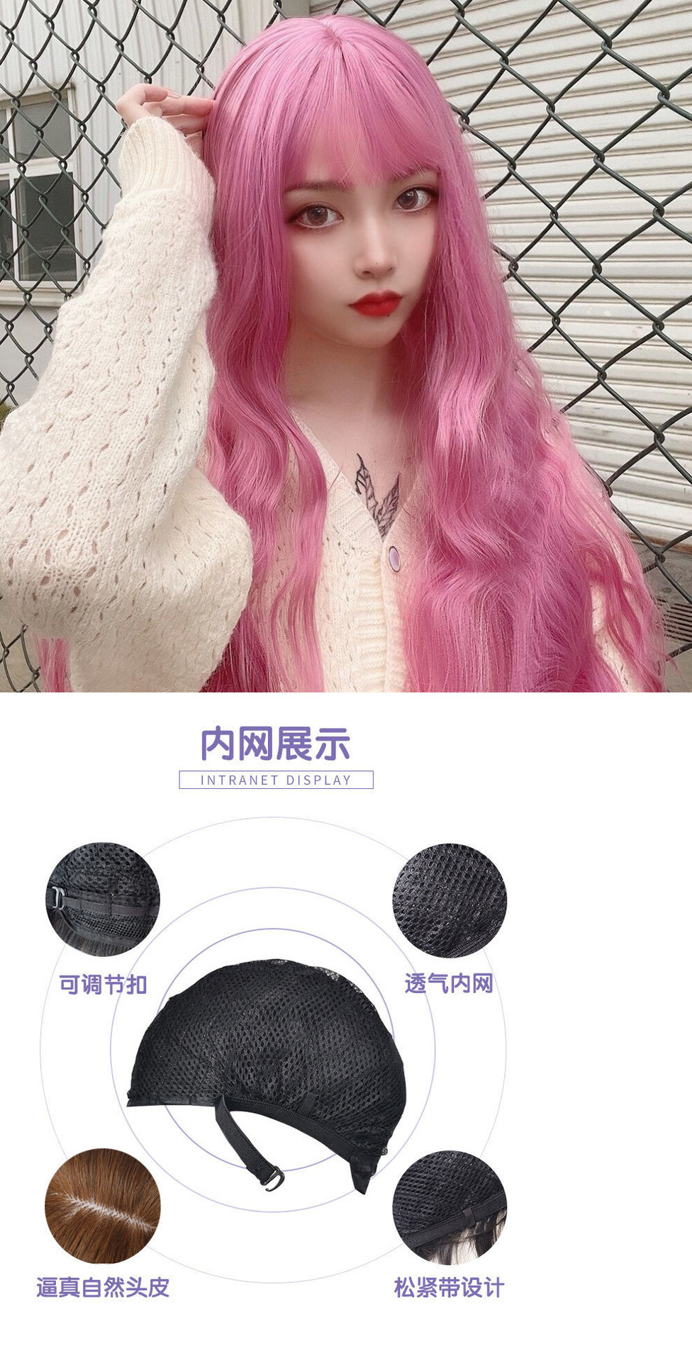女性用ウィッグ、コスエア前髪、ふわふわウェーブのかかったロングカーリーヘア、シミュレーションナチュラルライブカーリーヘア