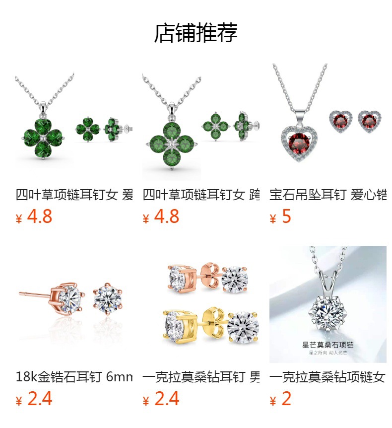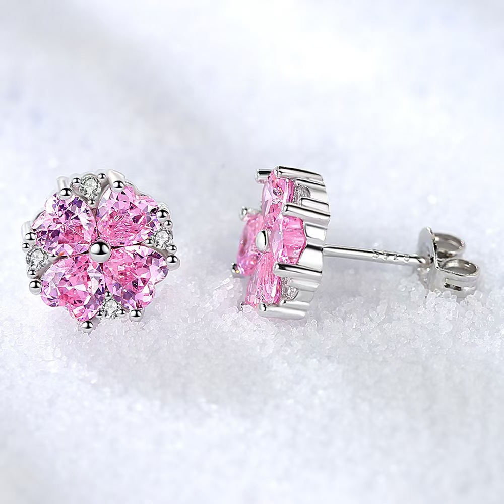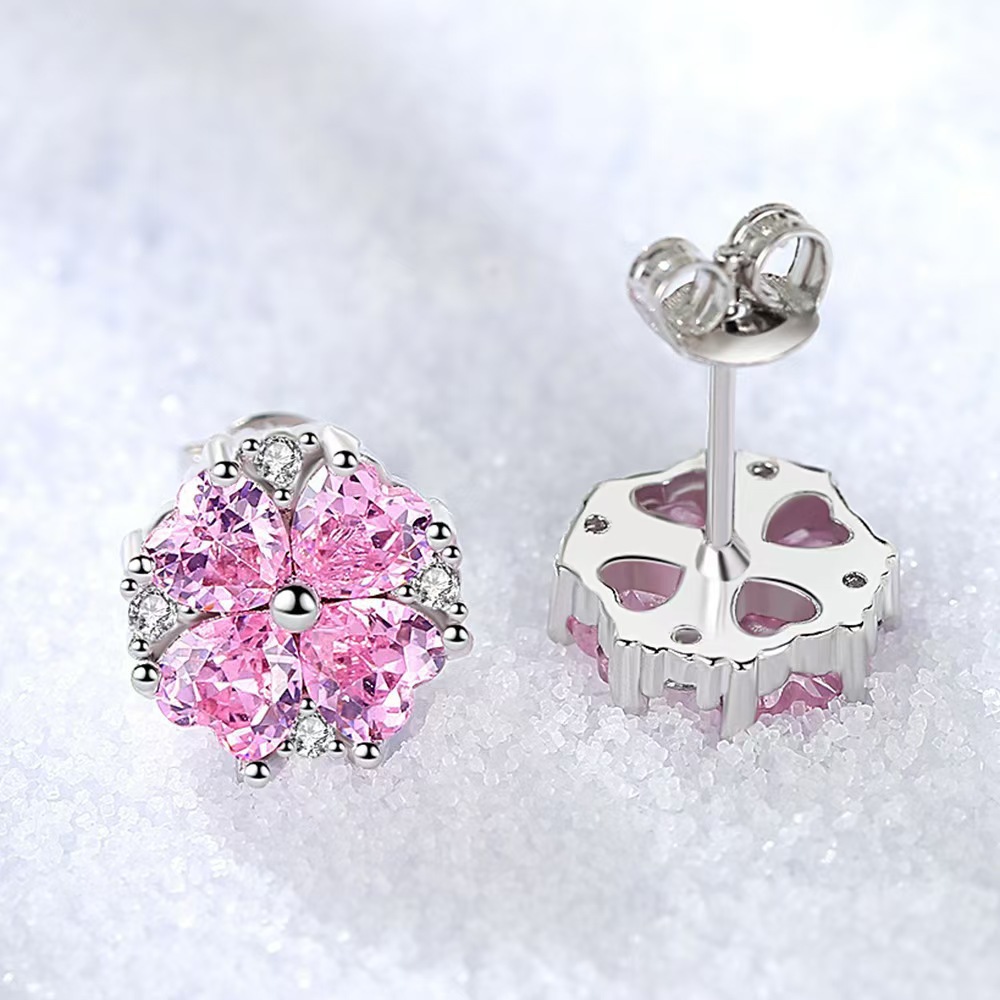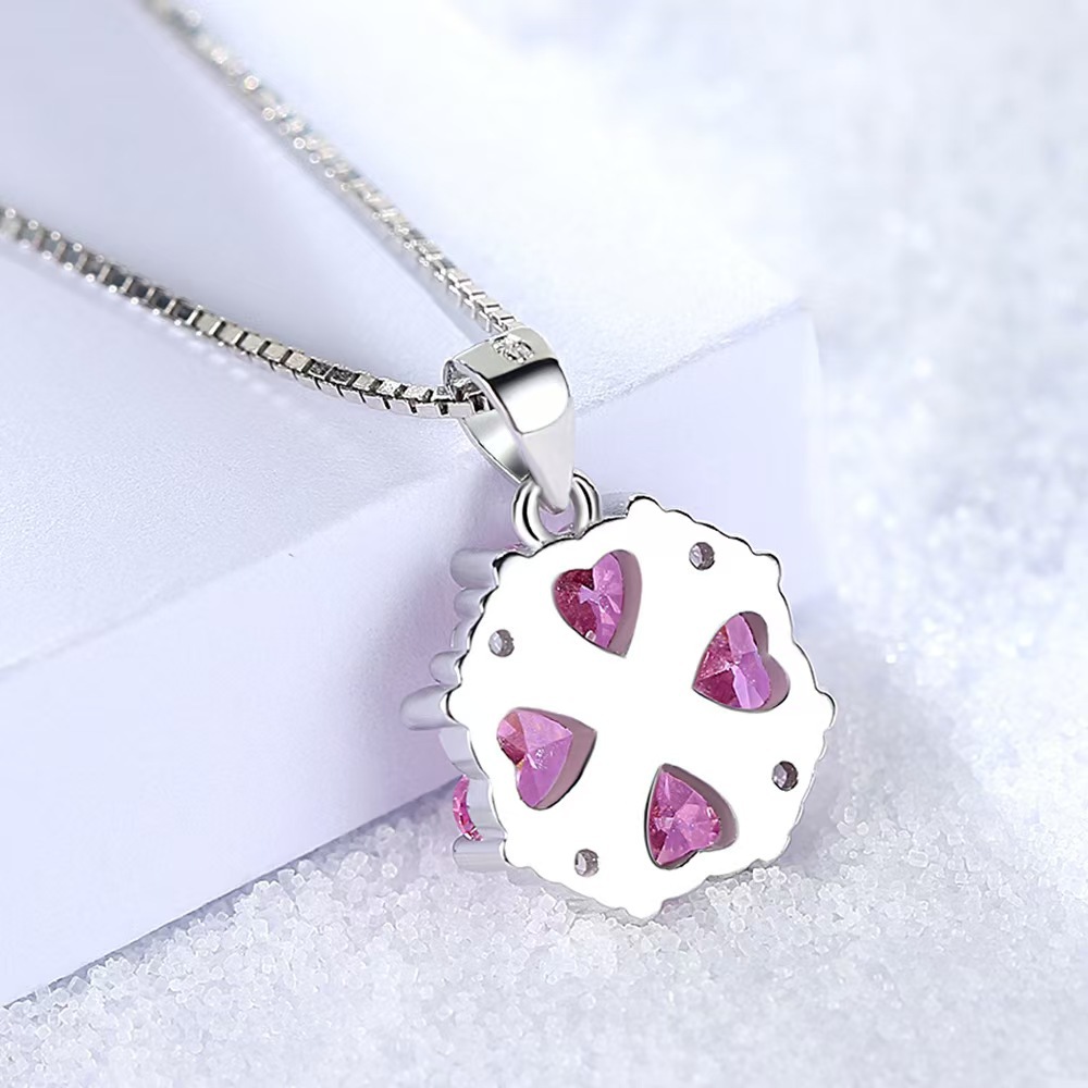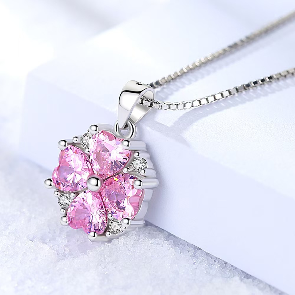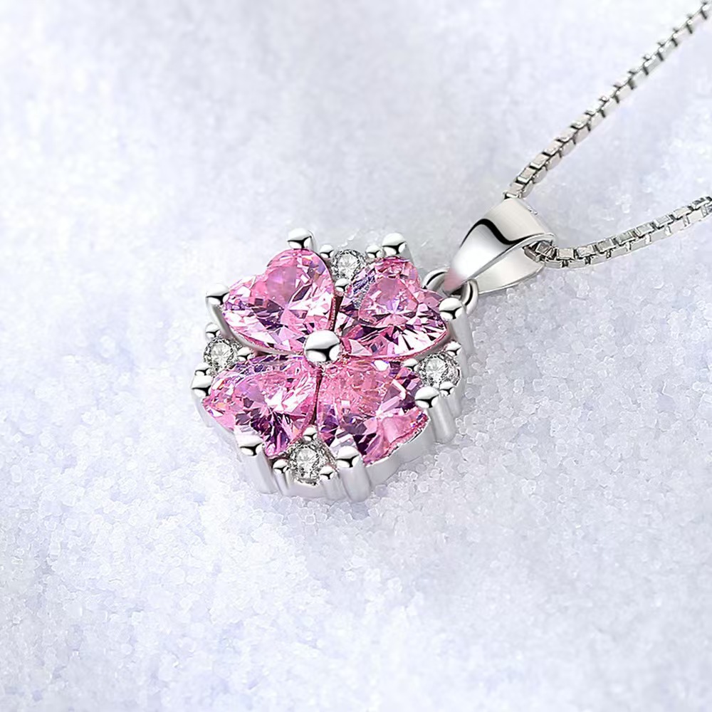 粉色四叶草项链耳钉女 锆石爱心吊坠套装可爱粉色樱花清新饰