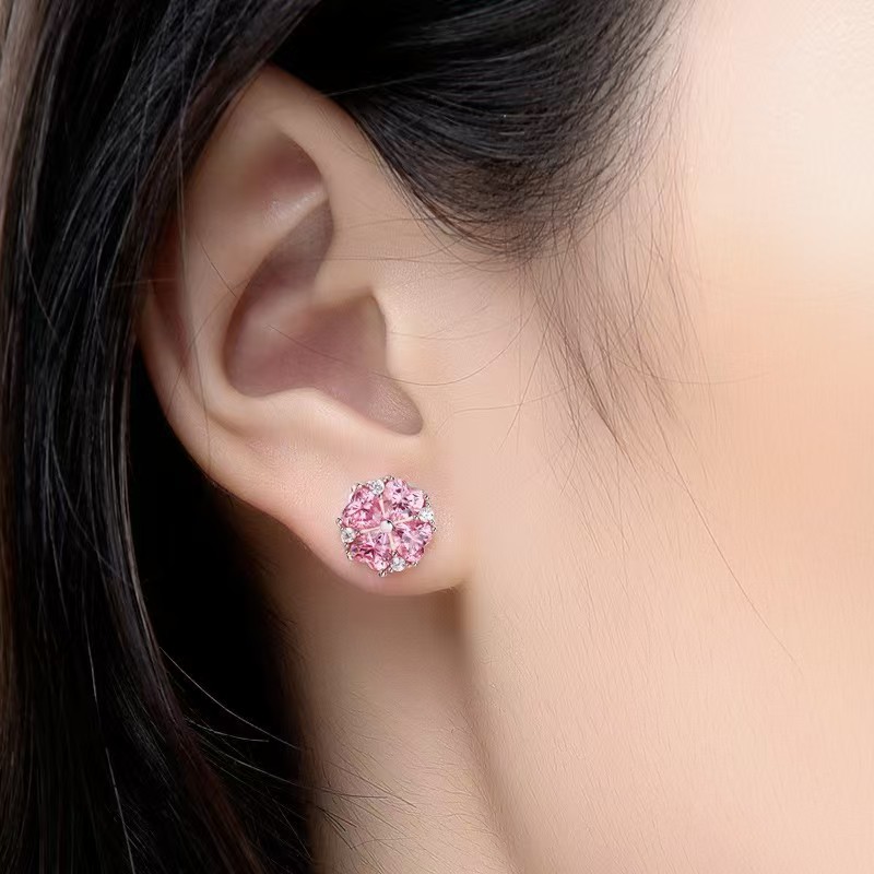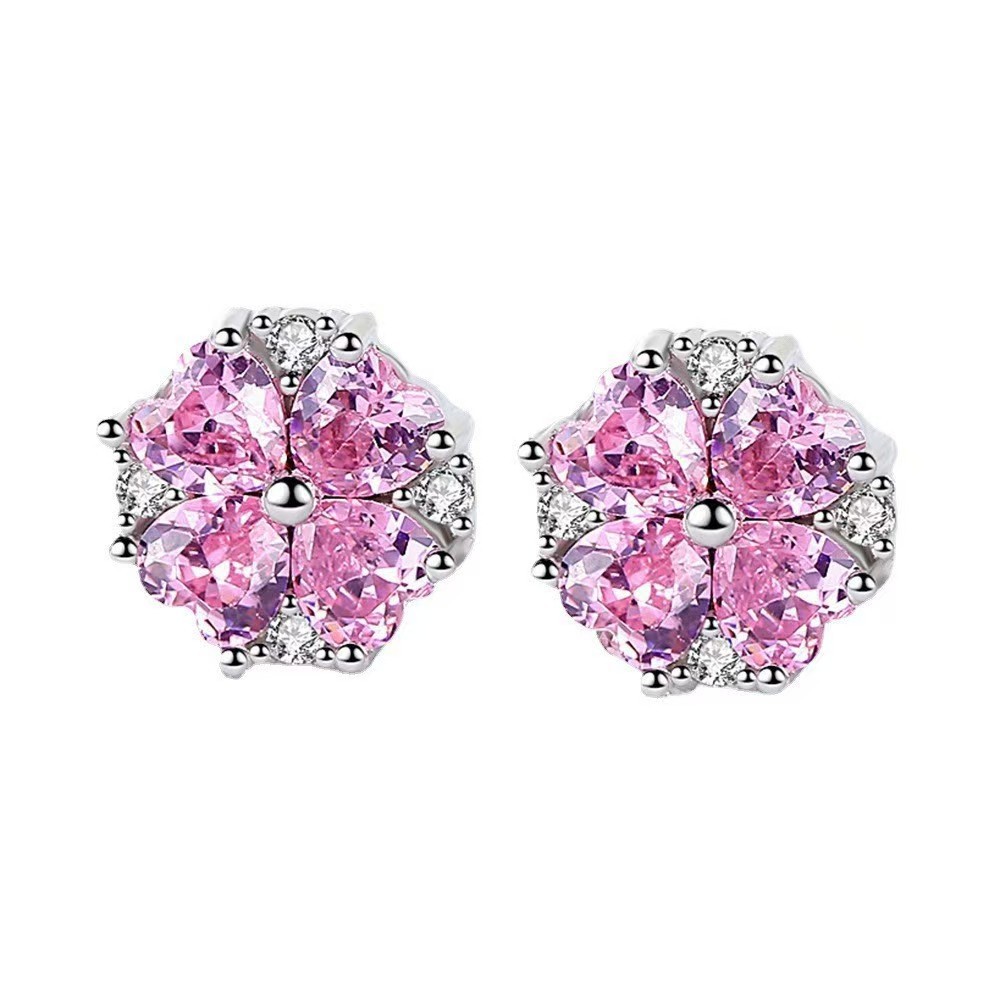 ピンクの水晶のピアスの女性の四つ葉のクローバーのシンプルな組み合わせはピンクの水晶の宝石のイヤリングのイヤリングのイヤリングのイヤリングの銀の装飾のバッチを挿し込みます。
