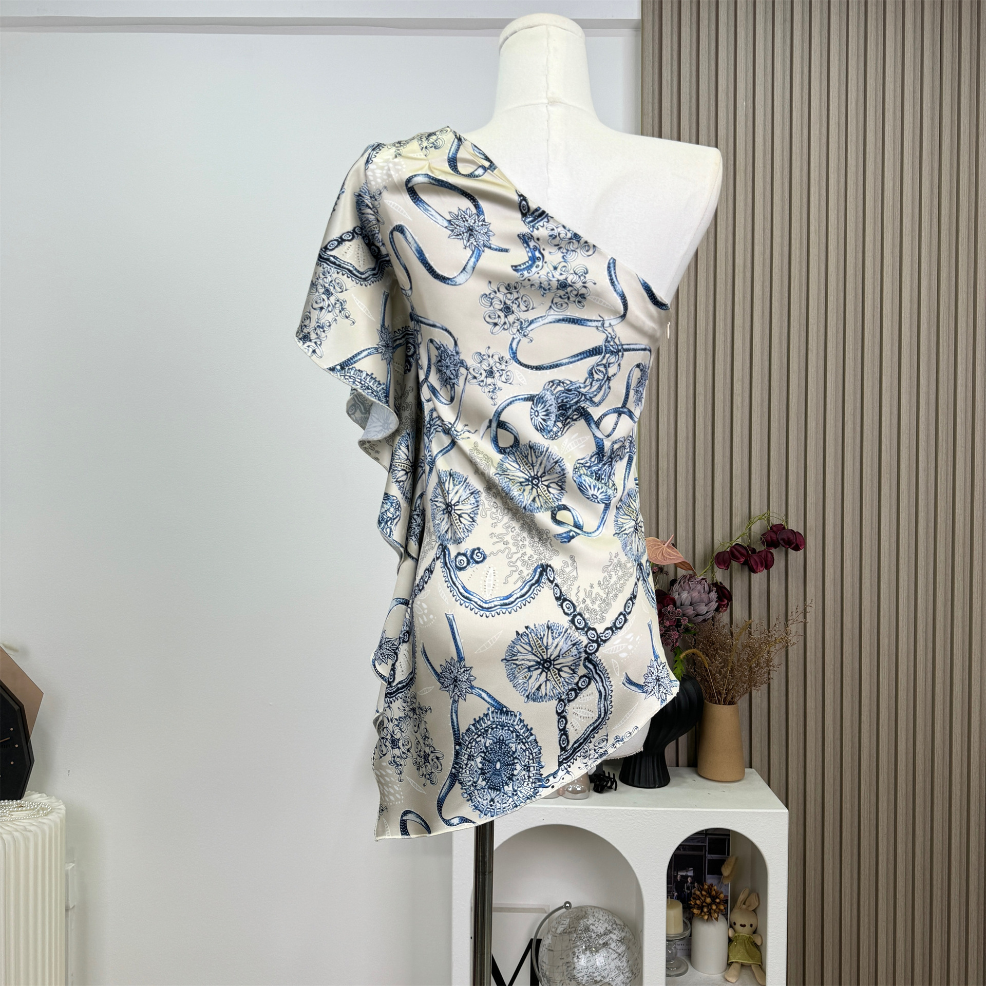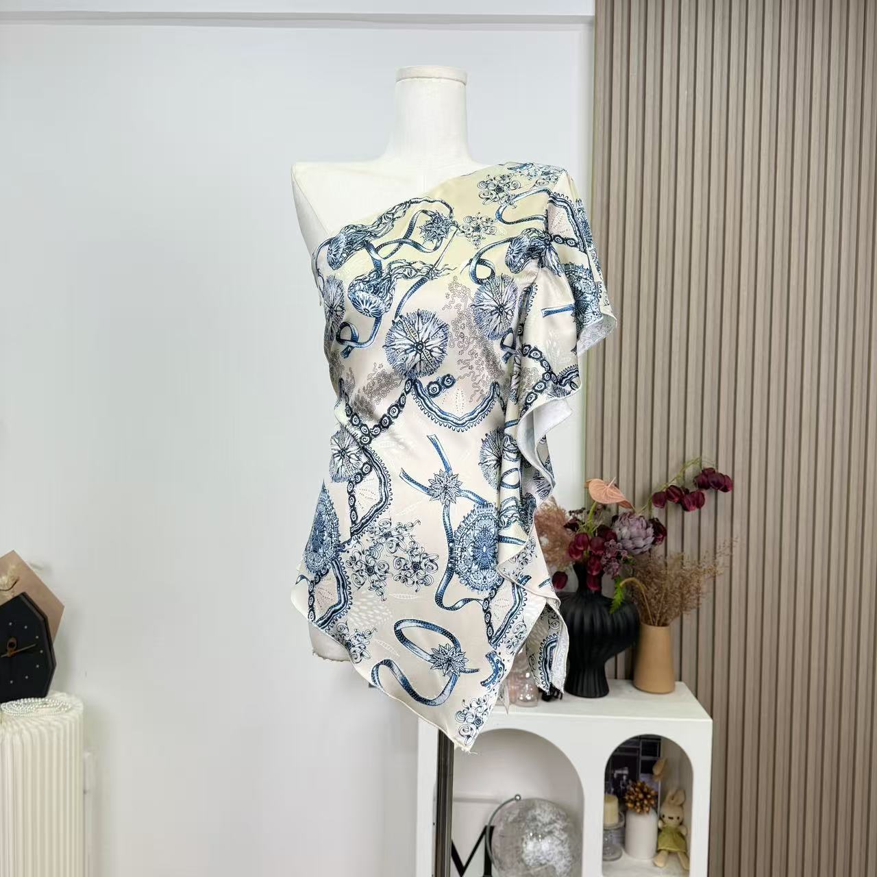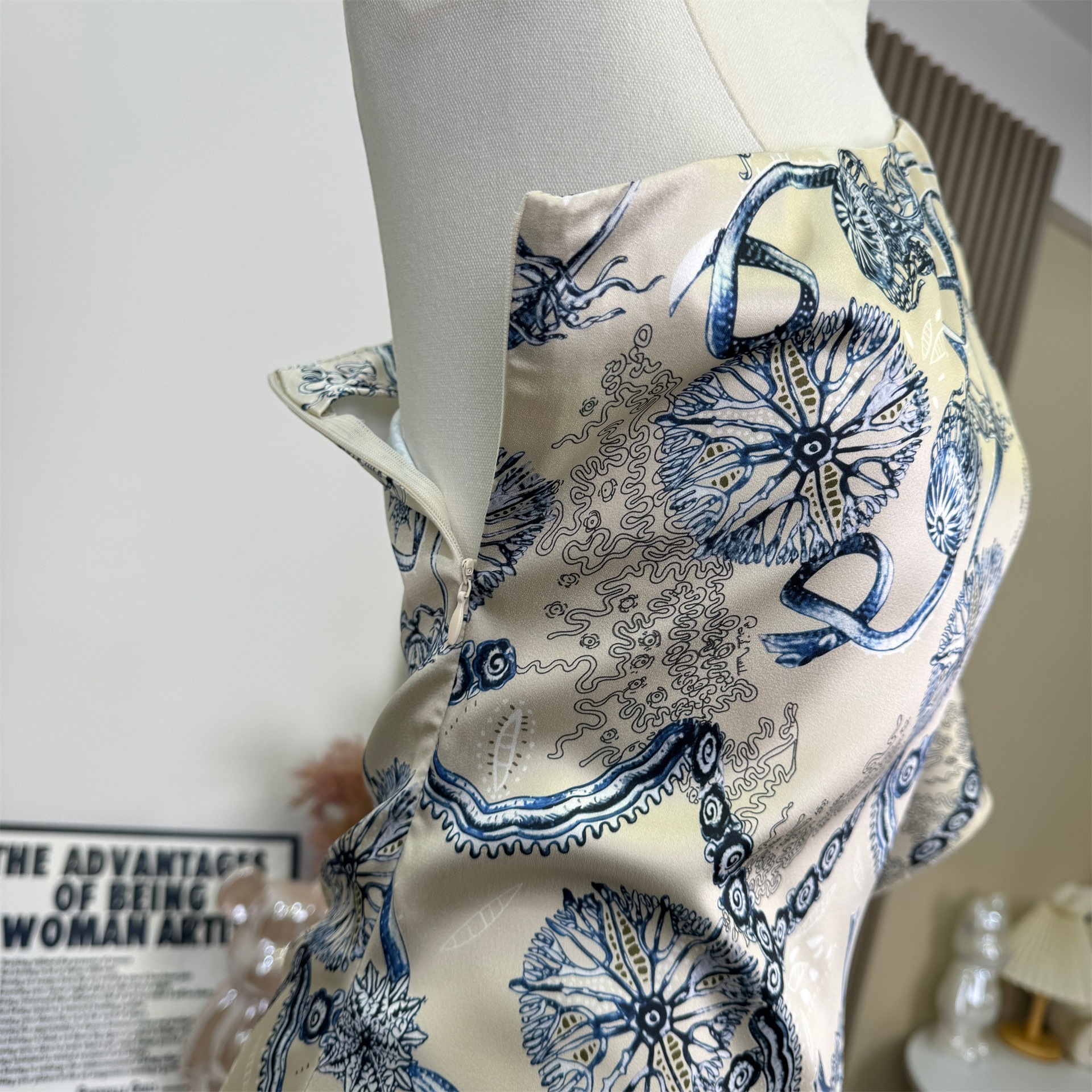 Qingyi Dreamweaver ヴィンテージ柄オフショルダー半袖ドレスレディース春夏スカート