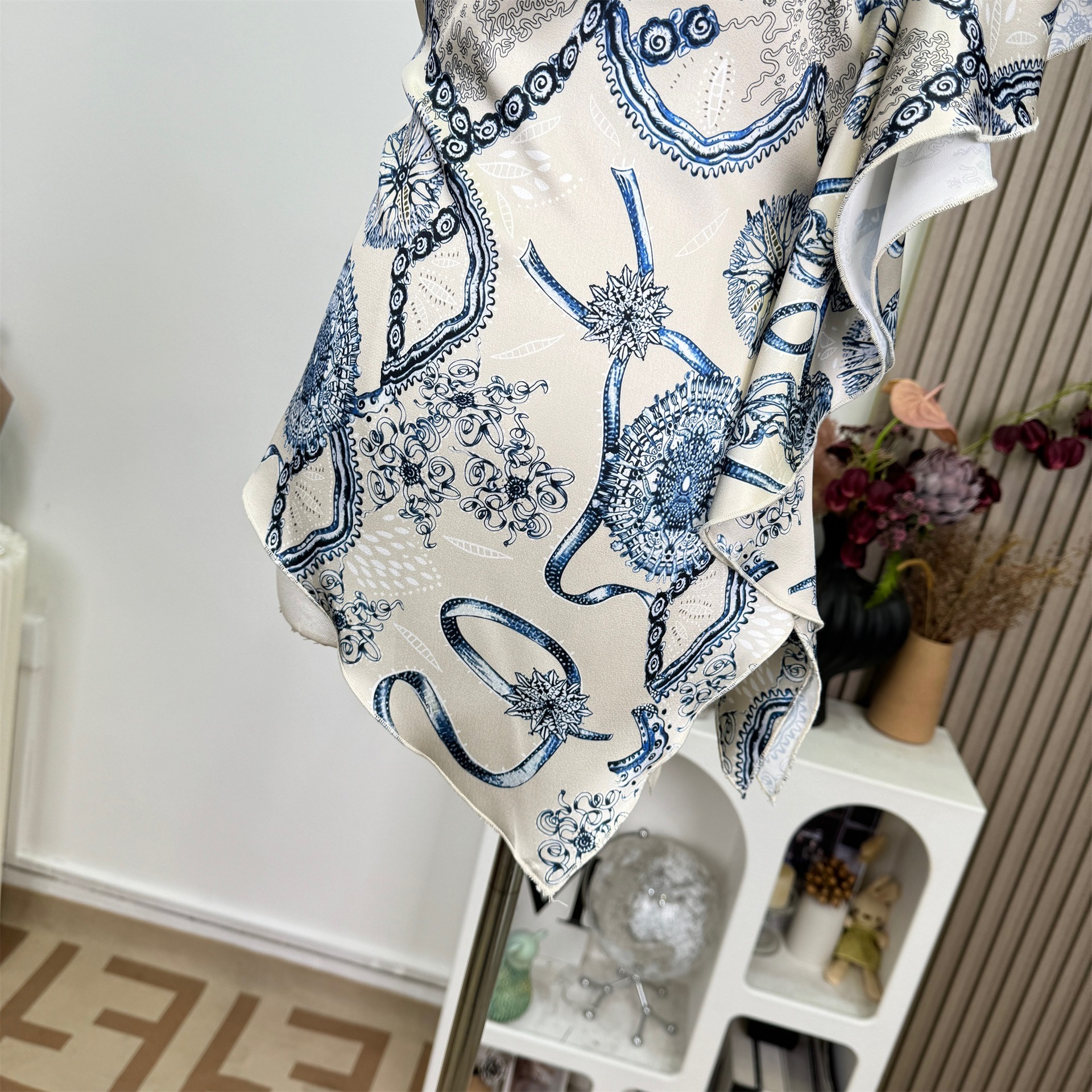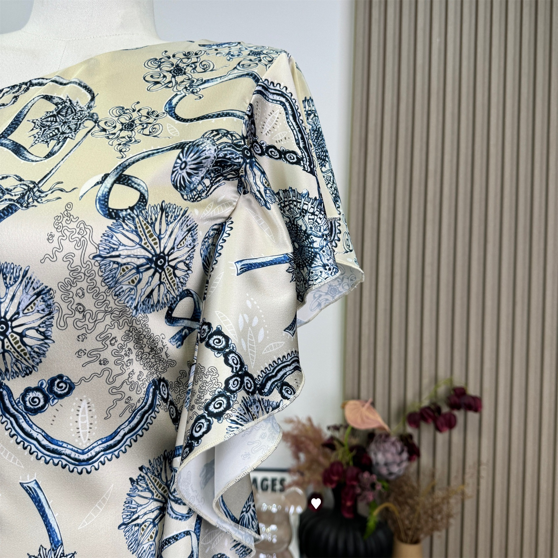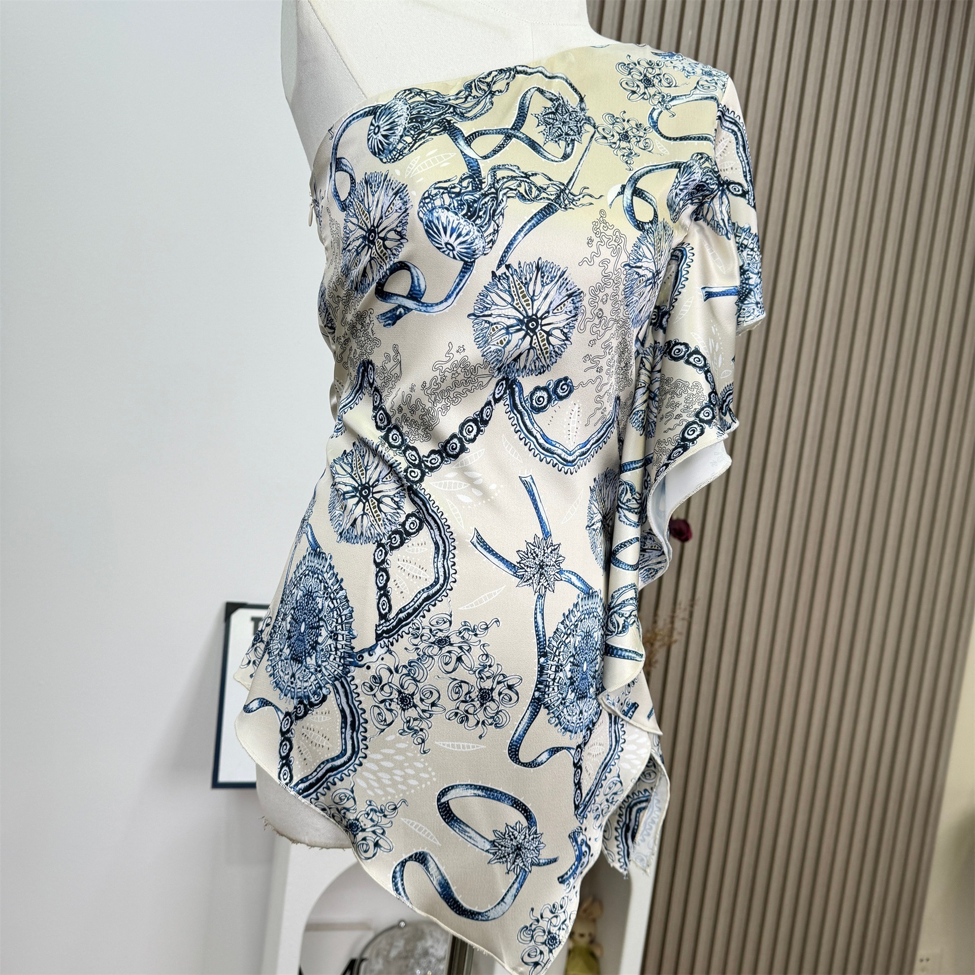 Qingyi Dreamweaver ヴィンテージ柄オフショルダー半袖ドレスレディース春夏スカート