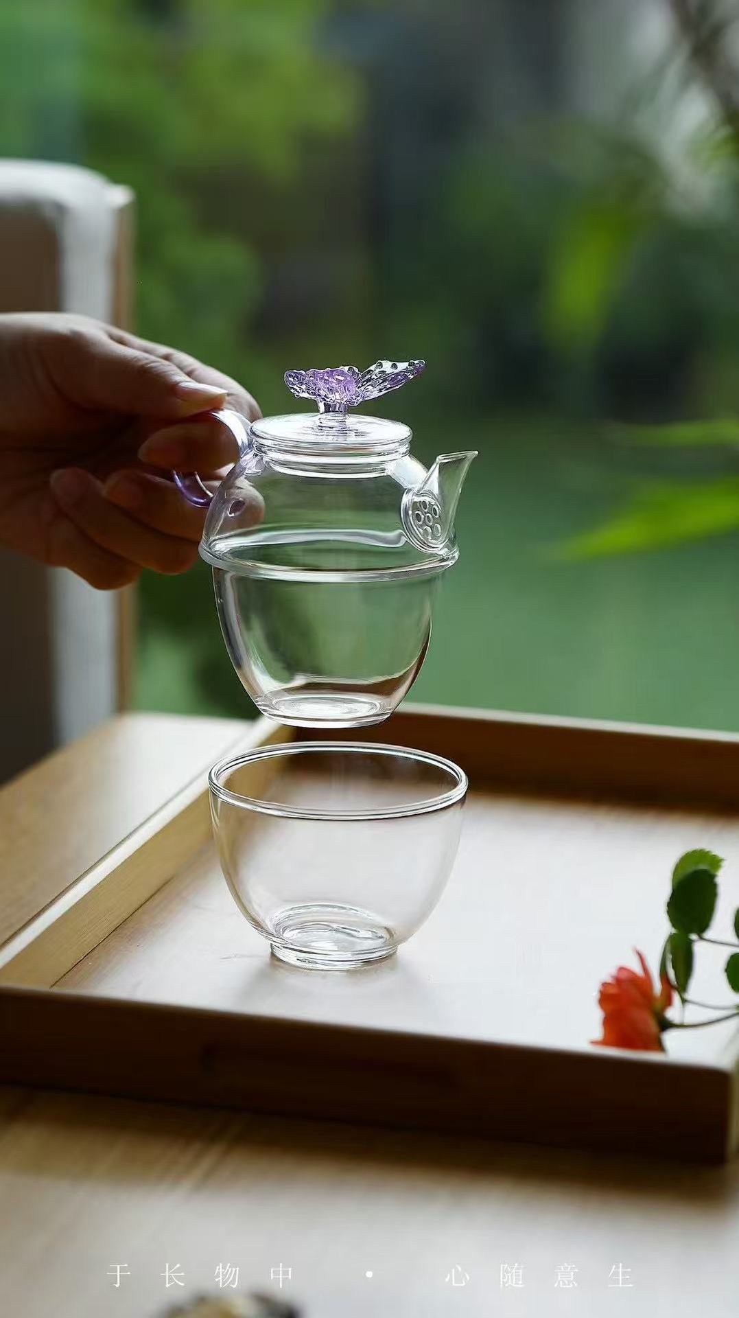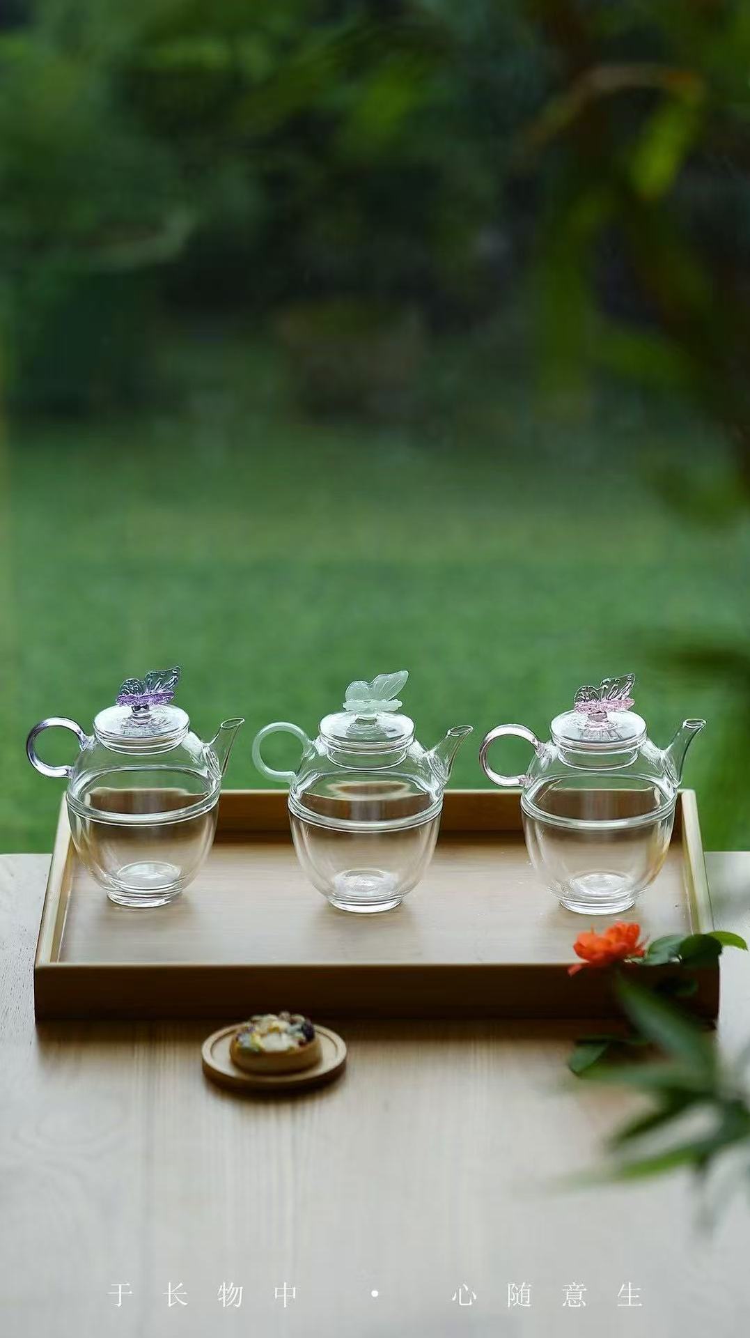 Yishi Tea Talk 高価値ガラス蝶ティーポット 1 ポット 1 カップティーセット 1 人用ティーカップティーセット