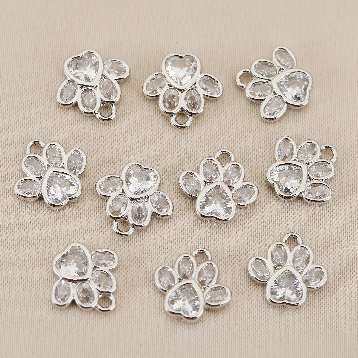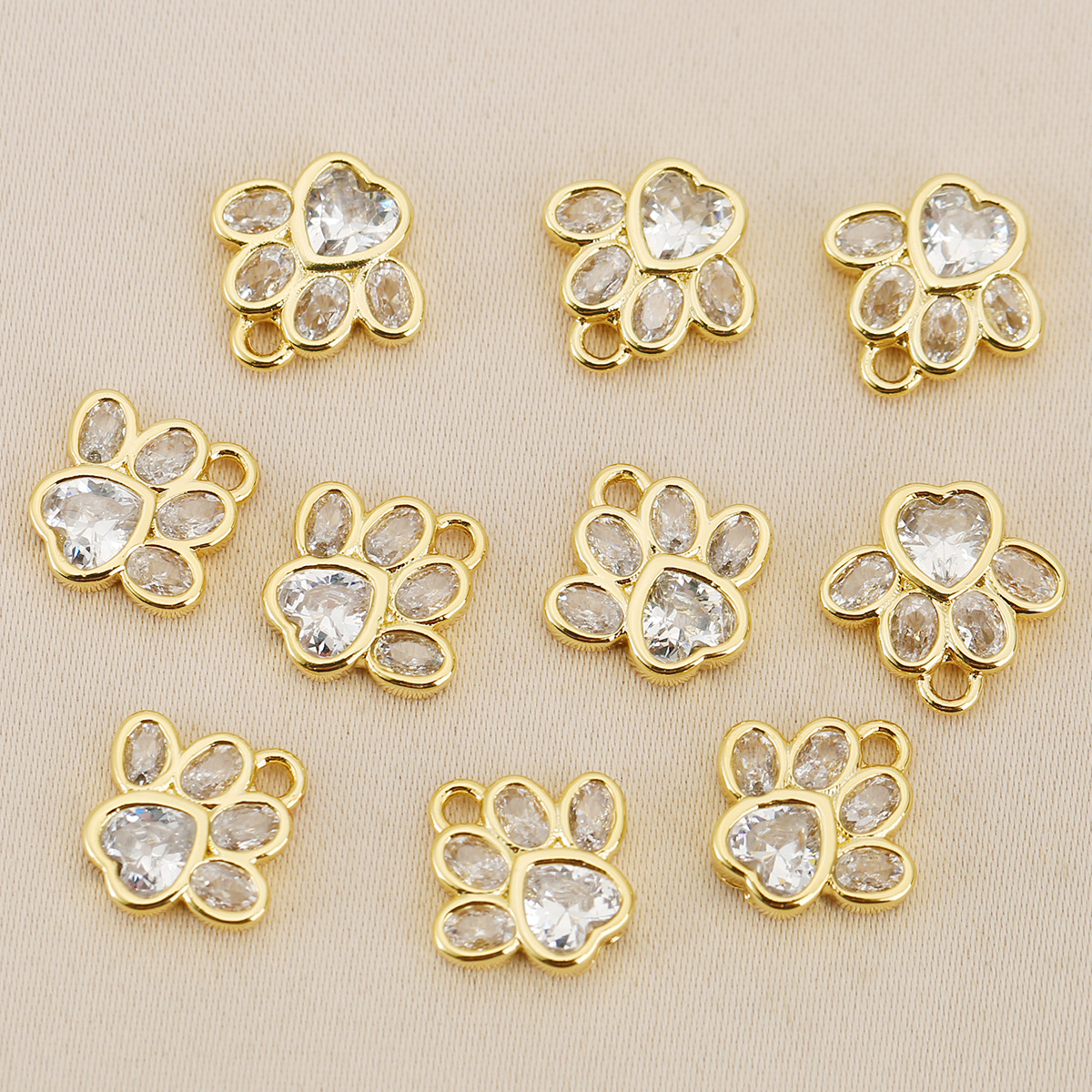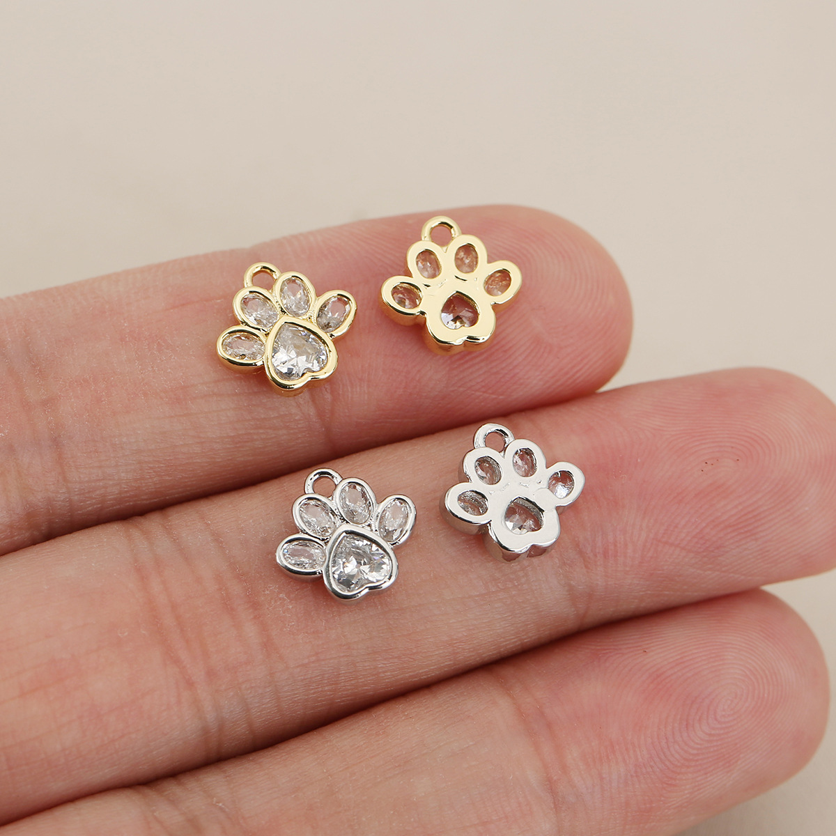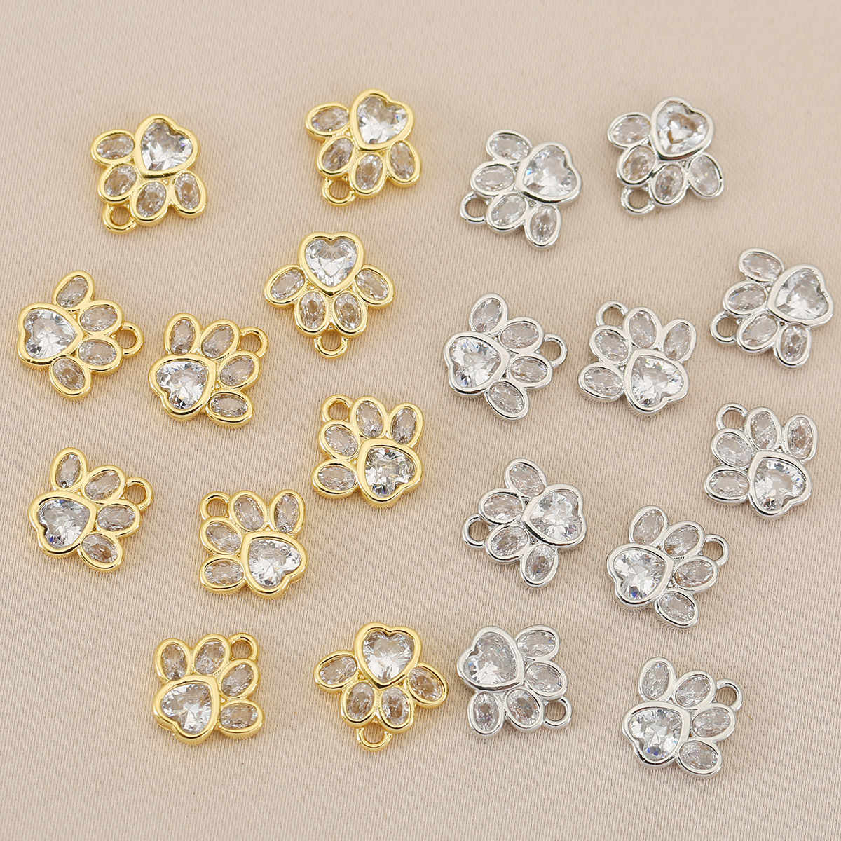 清新で甘い銅メッキ18k保色シンプルなミニチュアジルコン犬爪印ペンダントDIYネックレスブレスレットアクセサリー部品