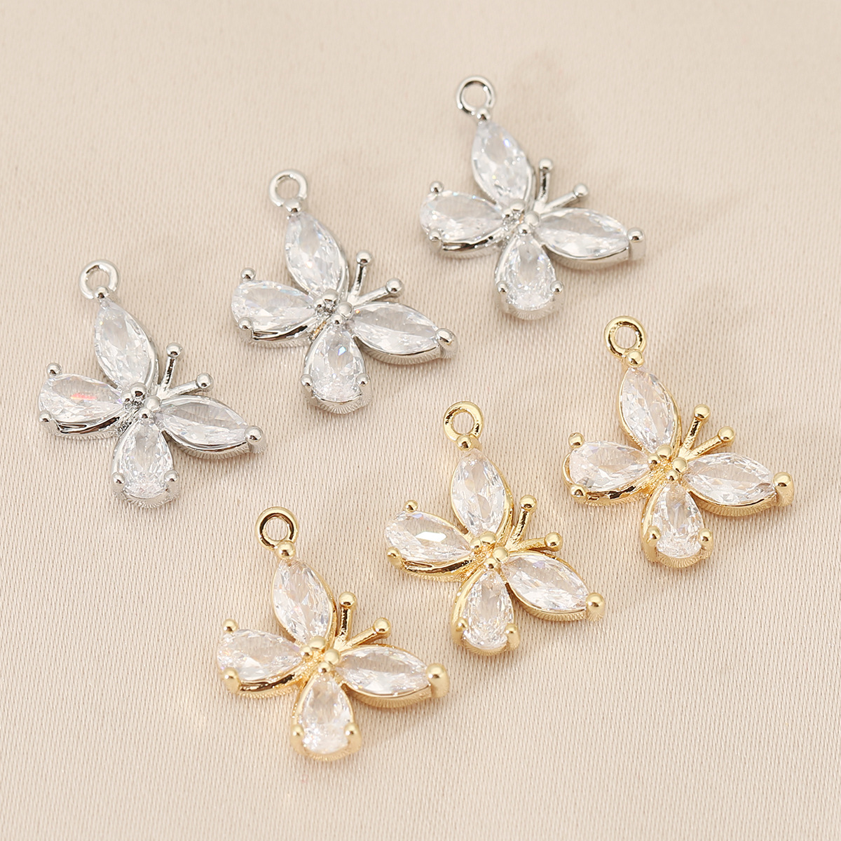 強保色14k包金にジルコニウム水晶蝶ペンダントネックレスペンダント手作りDIYブレスレットアクセサリー部品