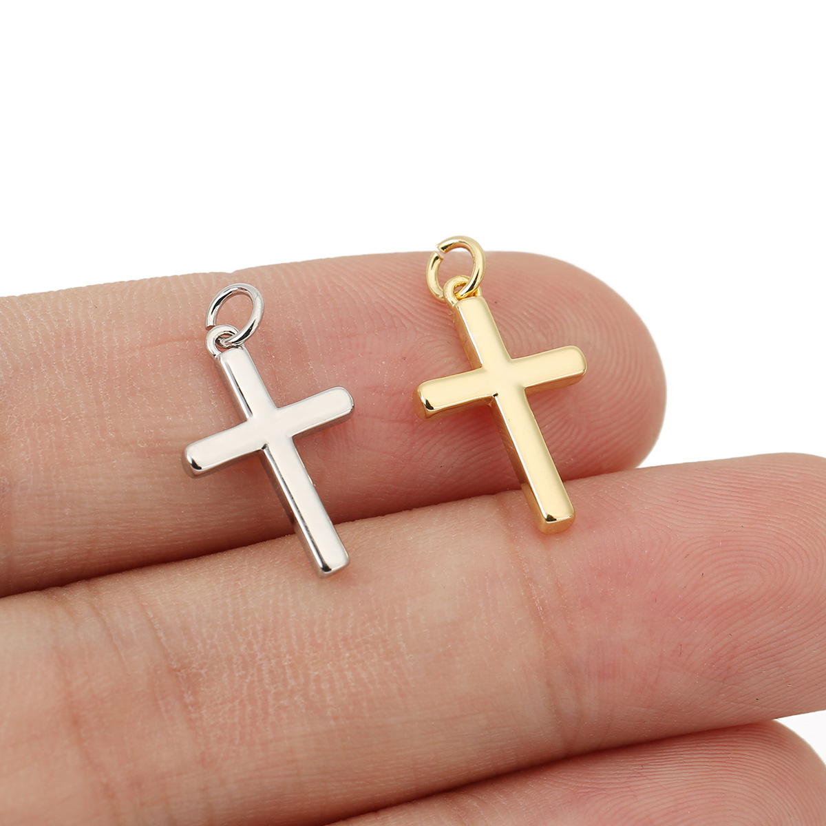 DIYアクセサリー銅メッキ18k金ダブル吊りクロスペンダントダブル穴クロス小さなペンダント接続部品