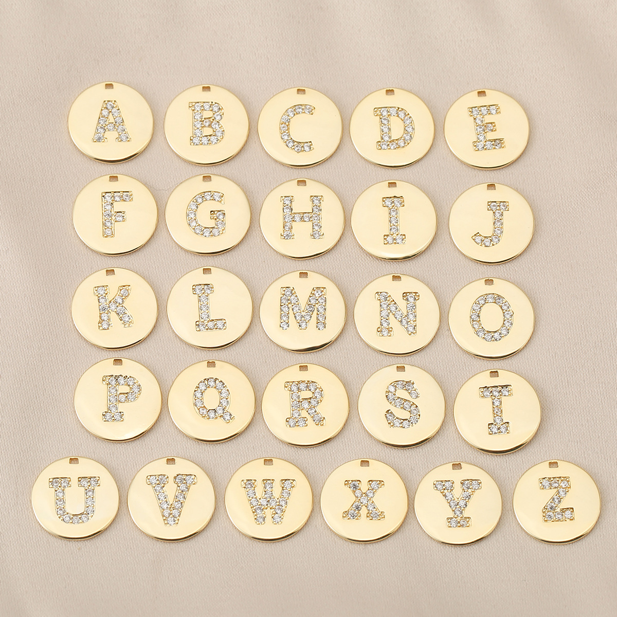 卸売り銅製ジルコニウム円形26文字ペンダントdiyブレスレットネックレス英語文字丸ブランドペンダントペンダント