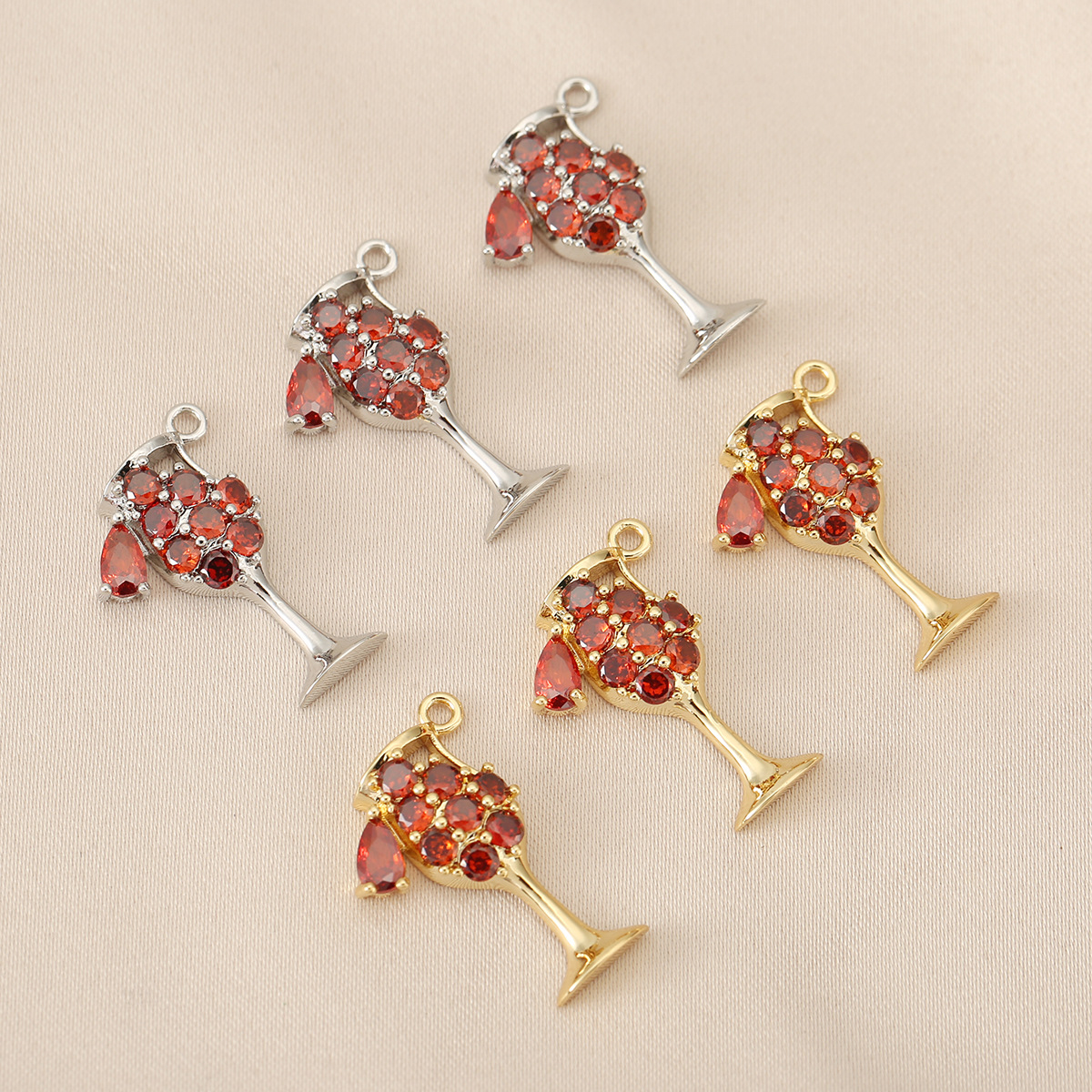 銅の18k金のかわいいジルコンのワイングラスの酒の瓶の双輪のペンダントの単一のペンダントの赤いジルコンのdiyネックレスの部品の卸売り
