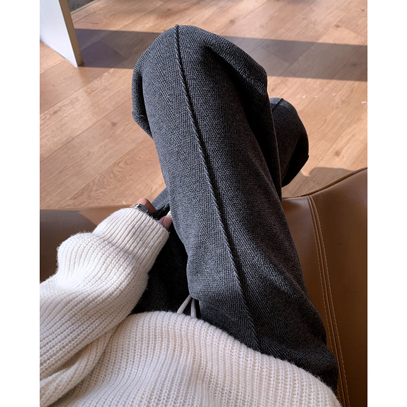 300斤大码胖mm羊毛呢阔腿裤女秋冬加绒梨形身材宽松显瘦直筒裤子