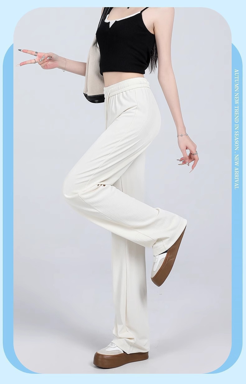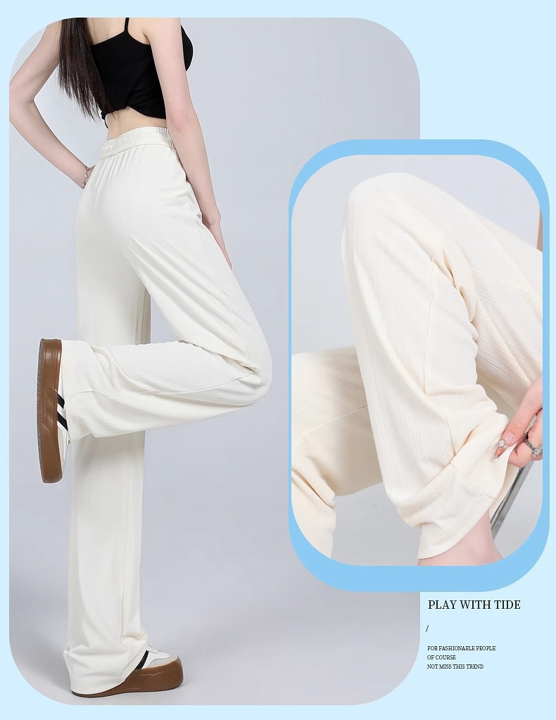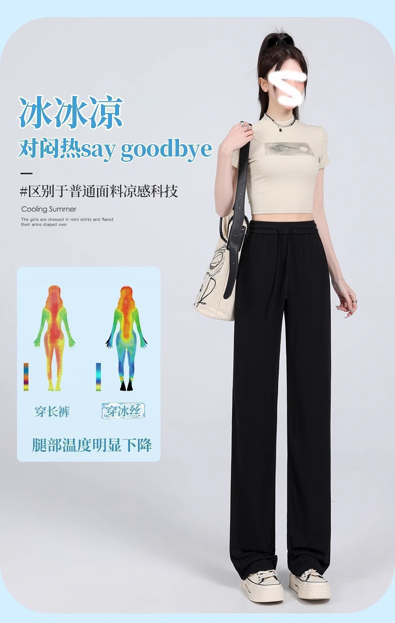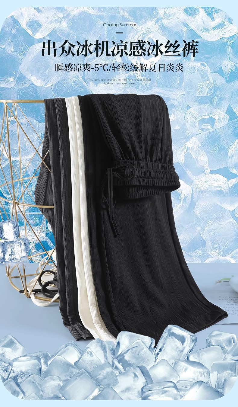 女性の夏の薄いアイスシルクパンツ 2025 アイスシルクマイクロフレアパンツ新しいハイウエストカジュアルドレープ日焼け止めパンツ