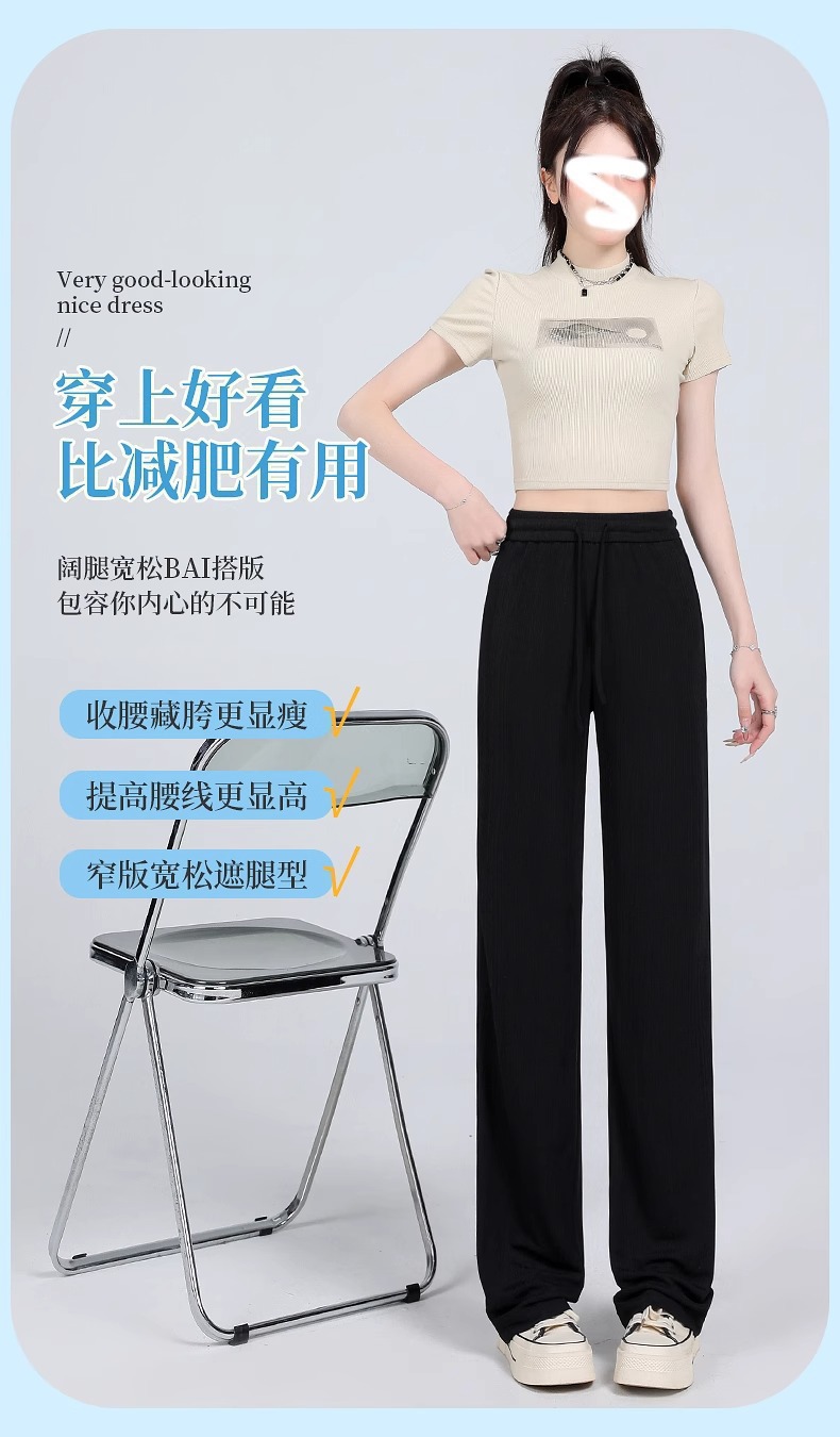 冰丝阔腿裤女2025新款春秋西装休闲女裤垂感显瘦大码夏季裤子显高