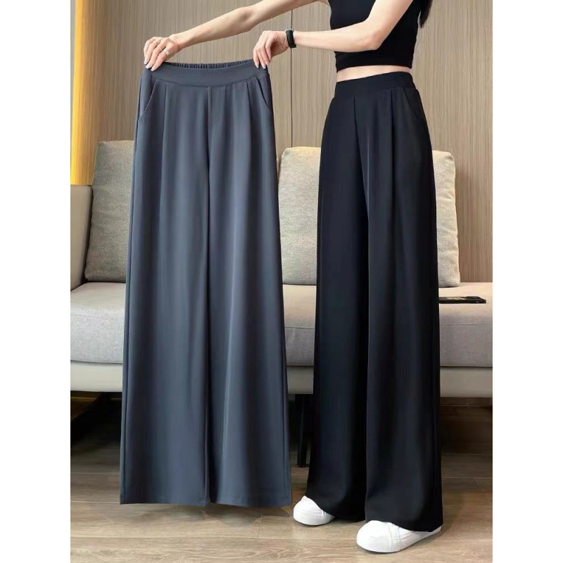 150kg ファット mm 特大サイズアイスシルクワイドレッグパンツ女性の夏薄いハイウエストストレートレッグフロアレングスカジュアルパンツ