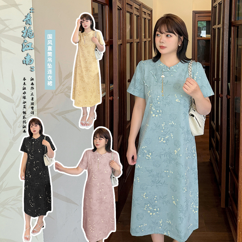 Eno プラスサイズの女性の新しい中国風花柄改良されたチャイナドレス 2025 夏の新しい気質ロングスカート 232618