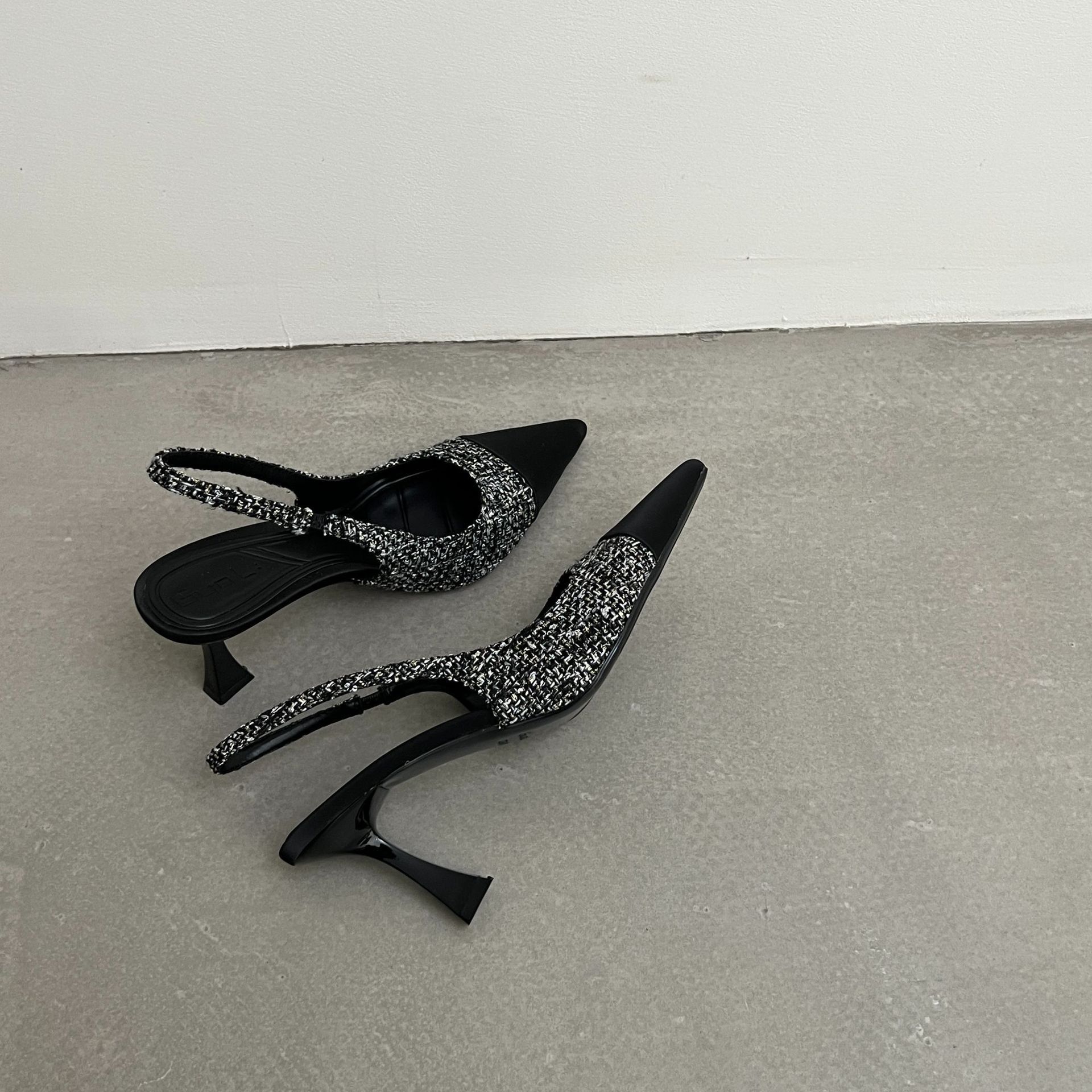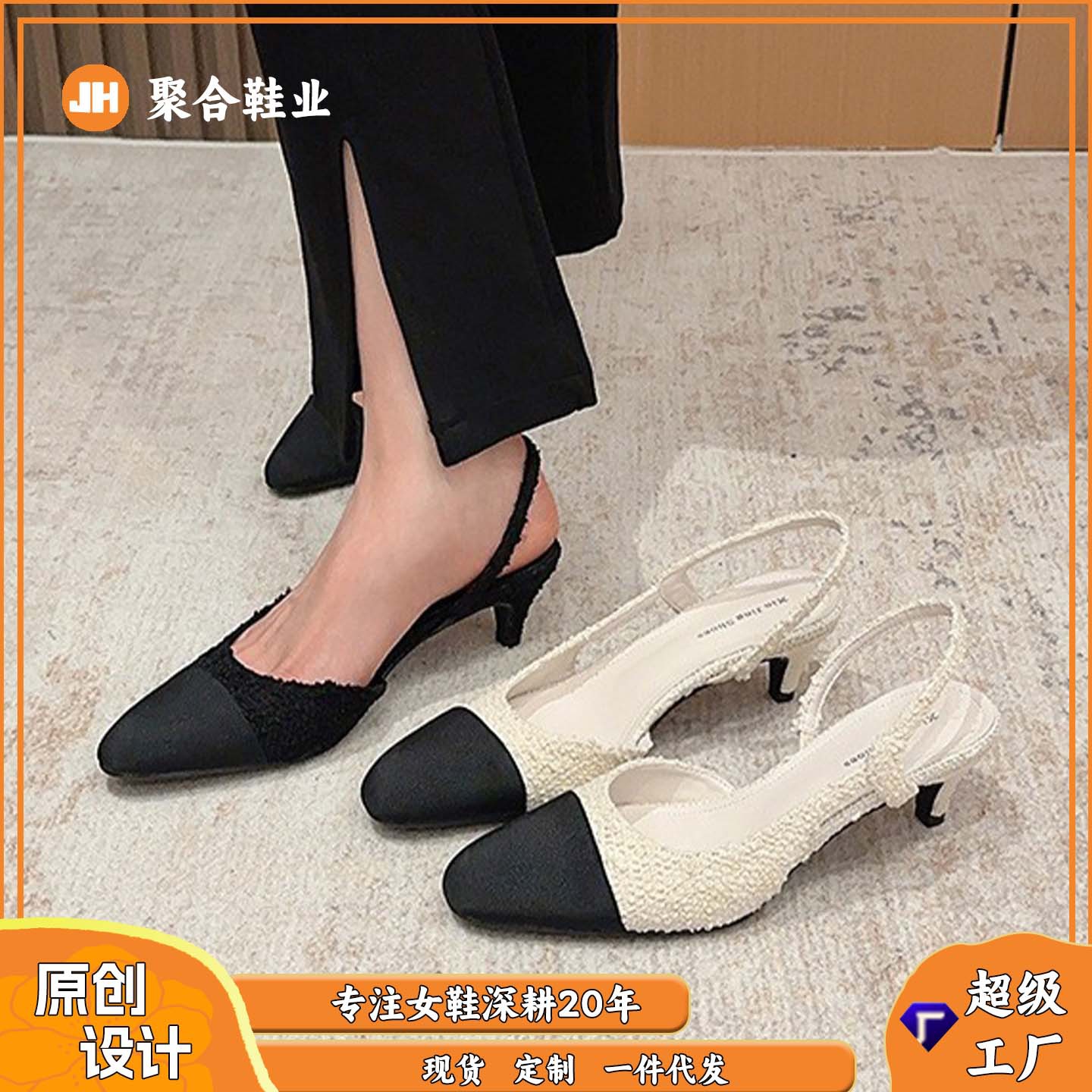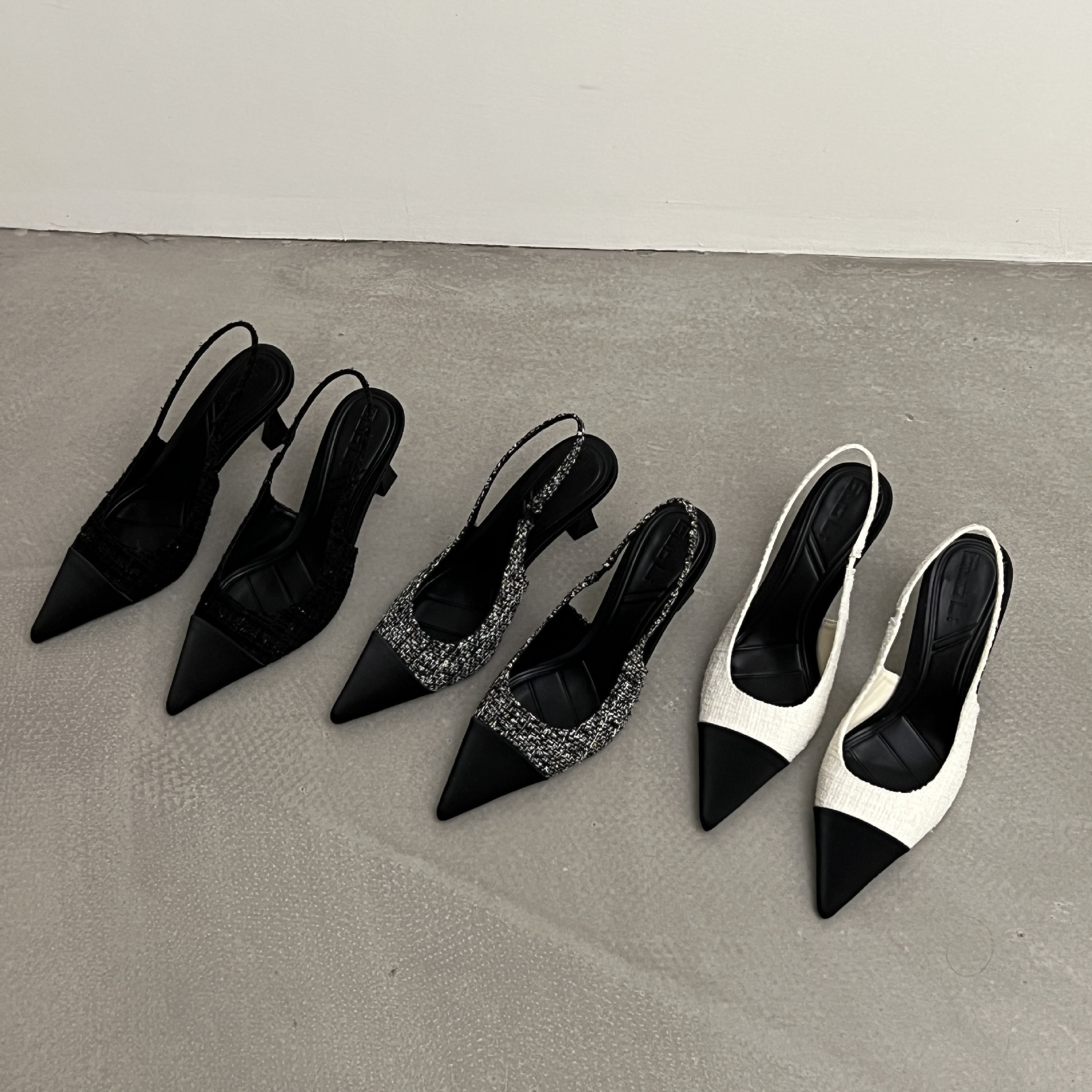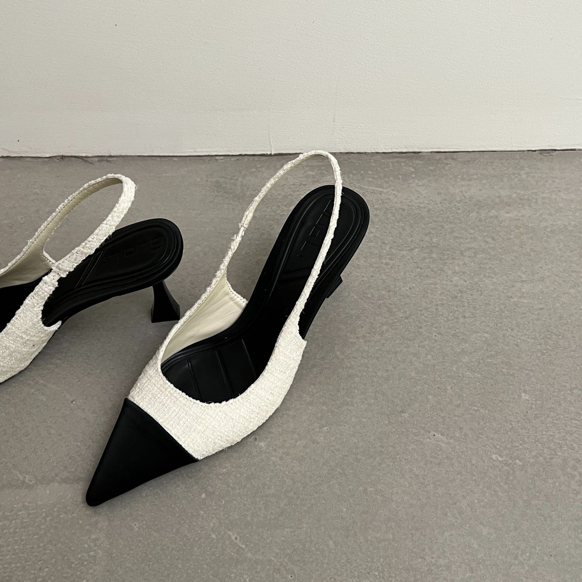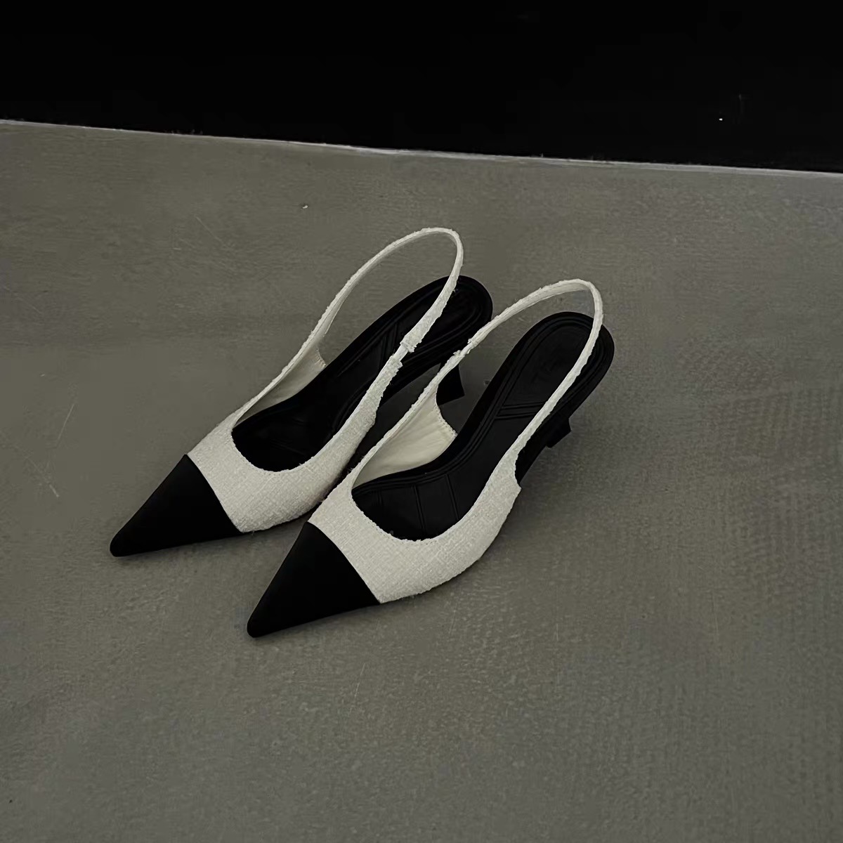 小香风法式尖头高跟鞋女2026年夏季新款拼色气质时尚包头后空凉鞋