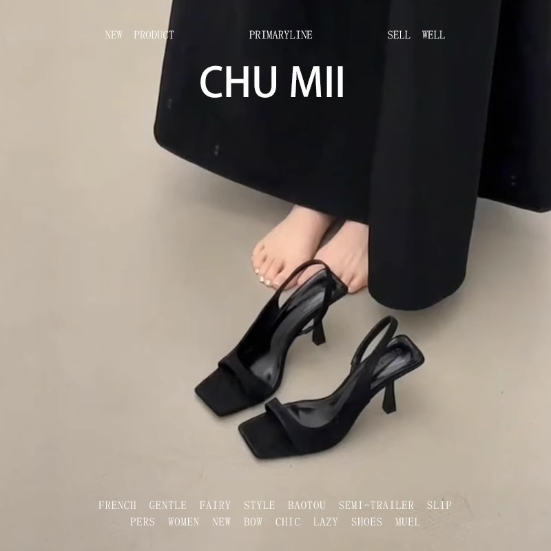 包頭サンダルの女性モデルは夏にスカートの小香風を配合した後、尖った口の浅い口の細いハイヒールの黒い白い