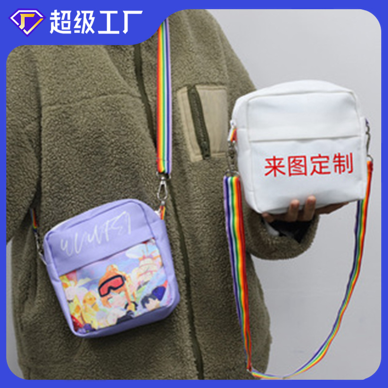 跨境ins风学生斜挎包卡通动漫来图印刷提花帆布包收纳手机包批发