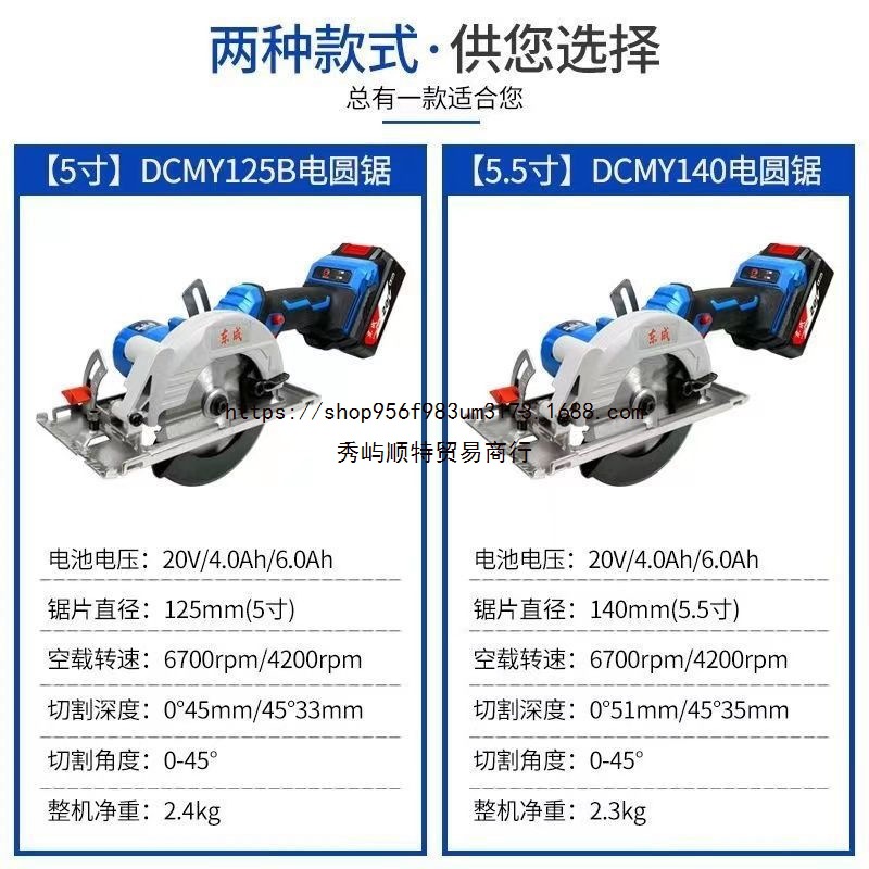 Dongcheng リチウム電気丸鋸 20V 5inch / 5.5inch 木工充電式ブラシレス切断機ポータブル片手プッシュソー