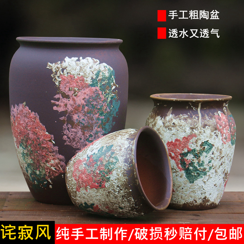 レインボーポット多肉植物植木鉢セラミックポット多肉植物老荘植木鉢粗い陶器通気性シンプルな小さな新鮮な花の植木鉢