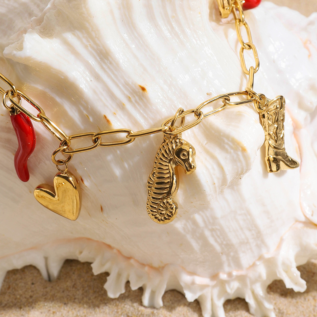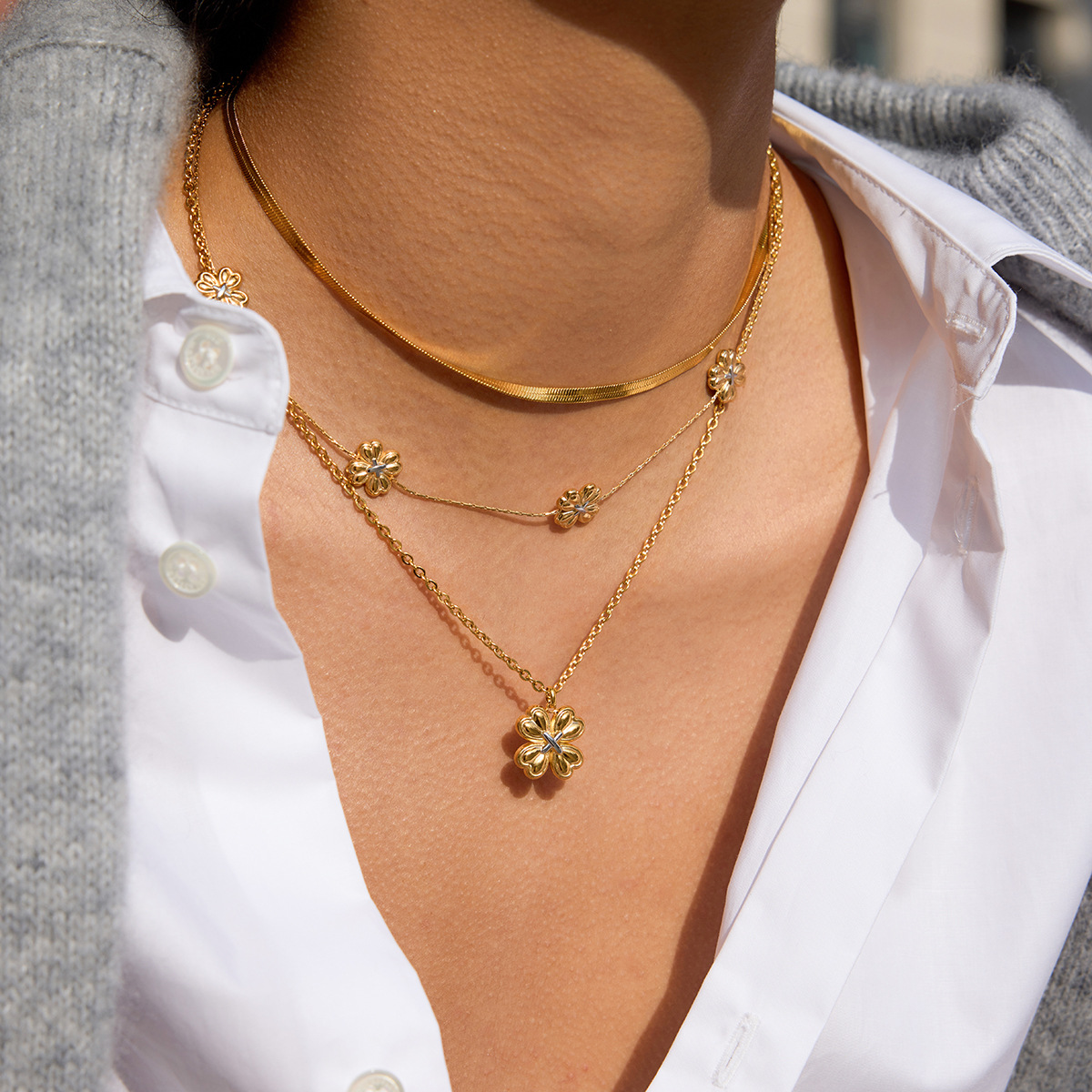 万兴不锈钢18k爱心拼接四叶草项链时尚百搭跨境热销拼色锁骨链女