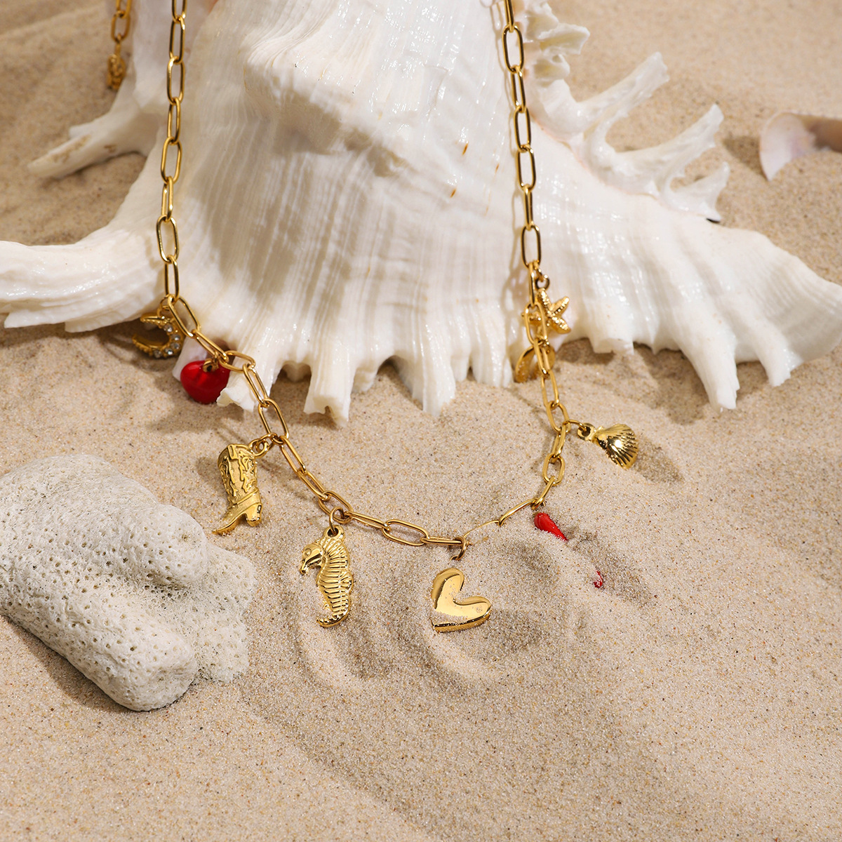 欧米の国境を越えた海洋シリーズの真珠のアクセサリーはファッション的で、海星の貝殻のネックレスのアクセサリーのステンレスのネックレスです。