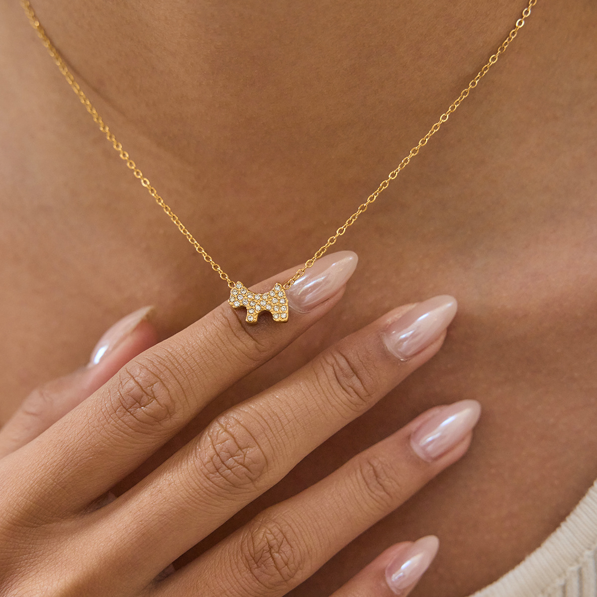万兴不锈钢电镀18K金小狗项链跨境热销高级感时尚超百搭简约饰品