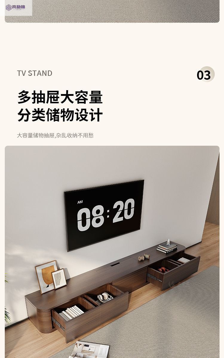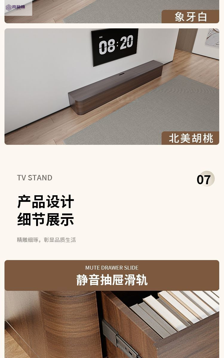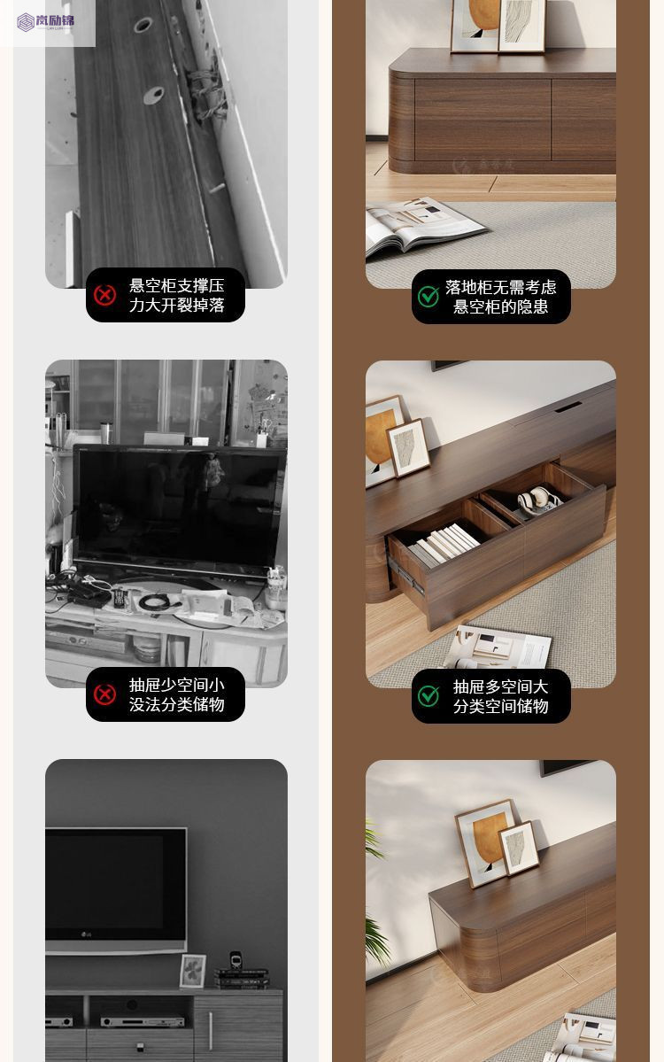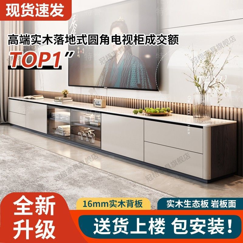 岩板茶几电视机柜组合现代简约落地家用客厅收纳储物柜一体小户型