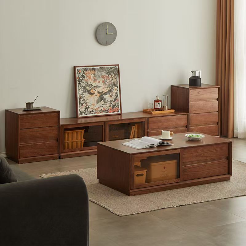 实木抽拉式电视柜茶几组合落地柜简约时尚多功能地柜