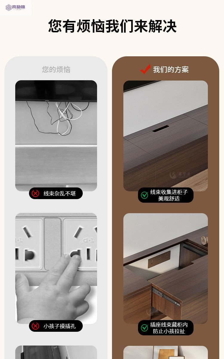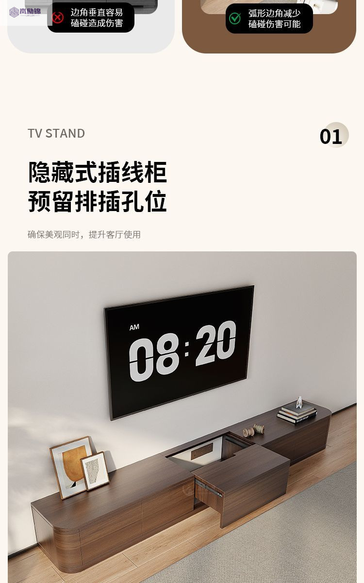 隐藏式插线电视柜客厅2024新收纳储物柜小户型一体墙柜家用落地式