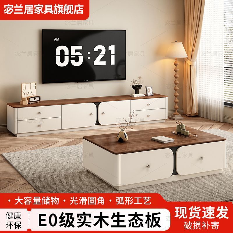 小红书同款撞色全实木电视柜茶几组合简约现代小户型客厅茶几客厅
