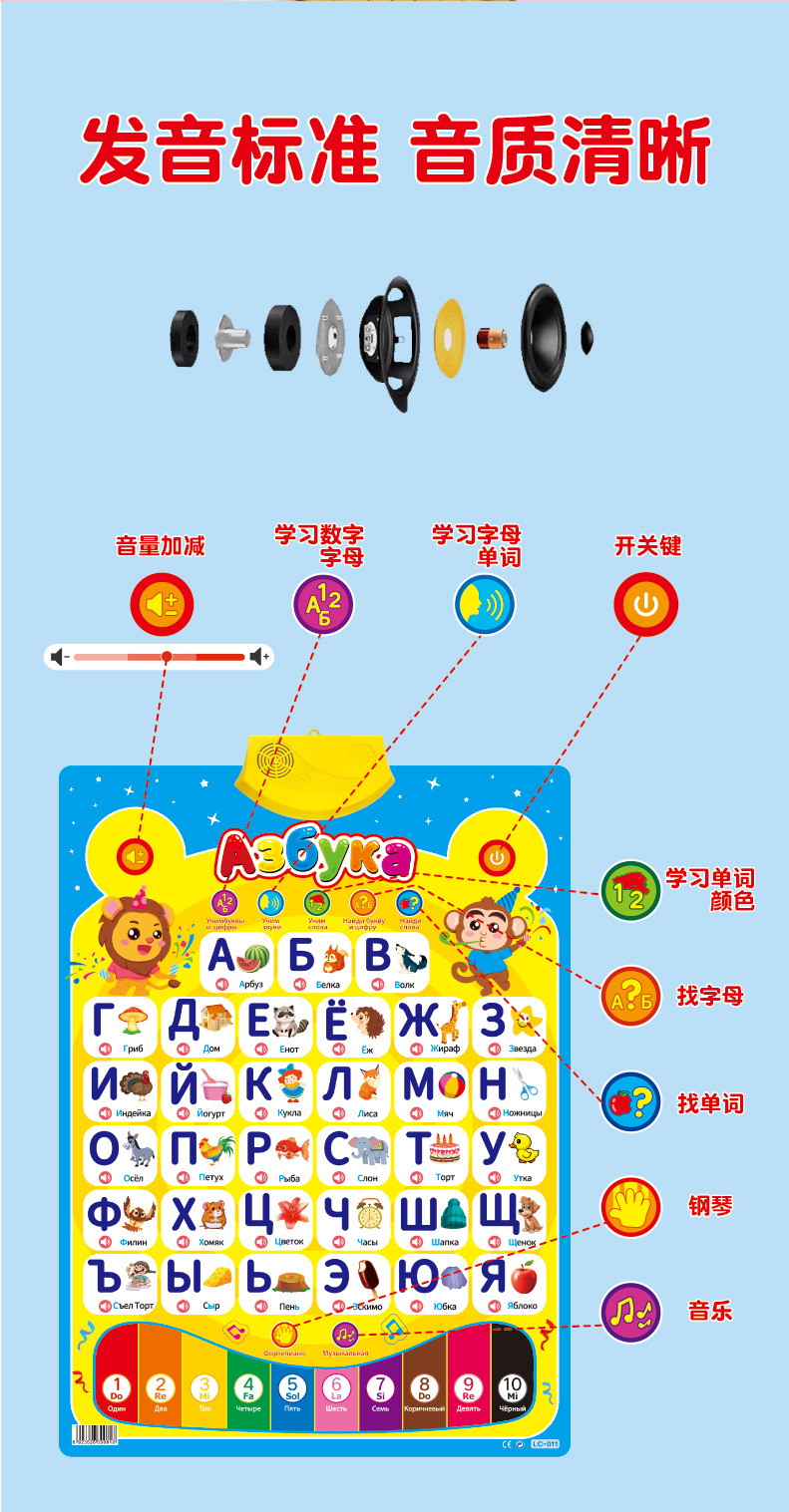 ロシア語ピアノアルファベットの子供の早期教育オーディオフィンガーポイント読書サウンドウォールチャートロシア語アルファベットのクロスボーダー特別供給