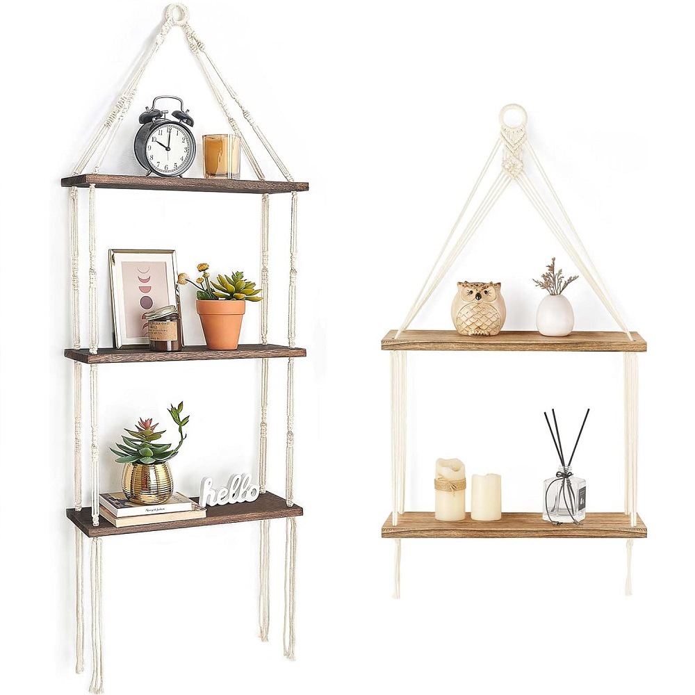ボヘミアン風麻縄物置棚壁飾り物置棚ストラップ収納物置板民宿植木鉢棚装飾