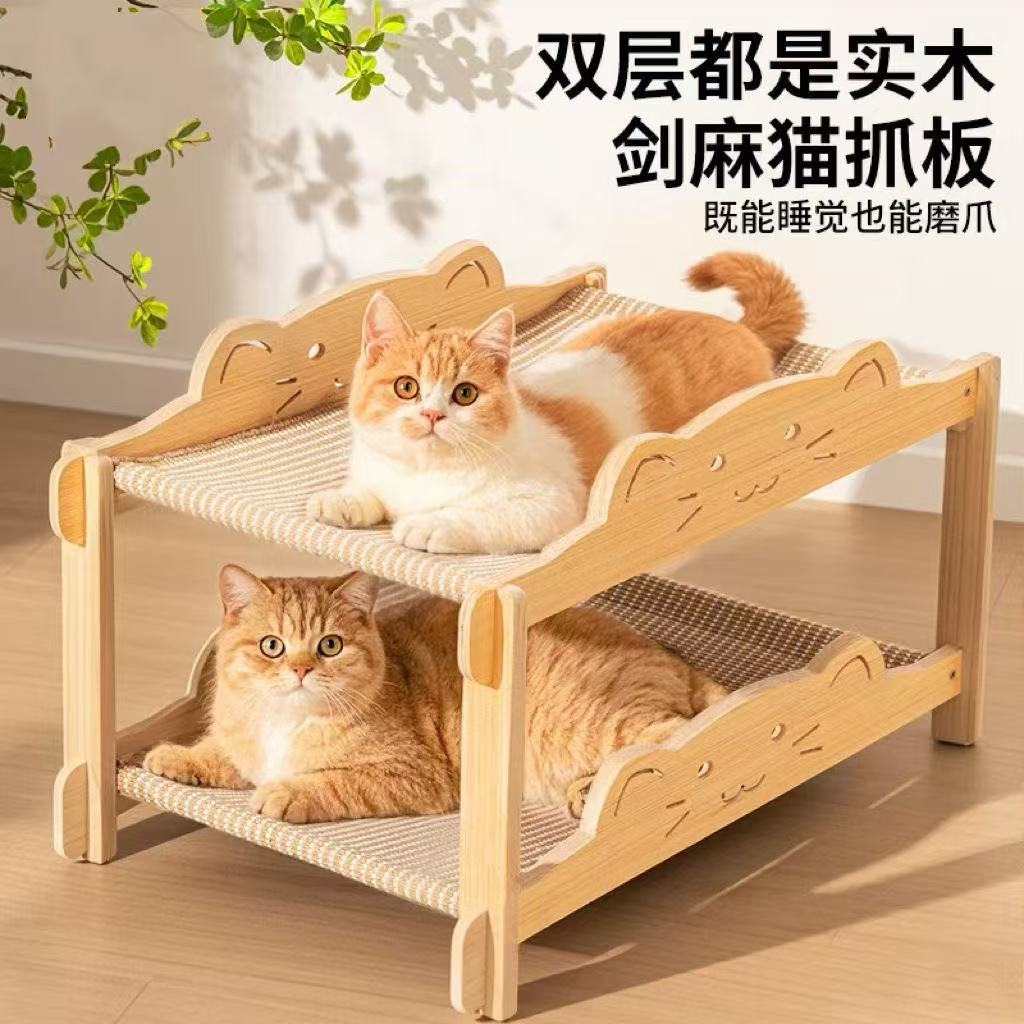 二層木製猫スクラッチボード、オールシーズン対応の猫の巣、傷つきにくく、耐摩耗性、欠けにくい猫の爪ボード、広いスペースの猫のおもちゃ