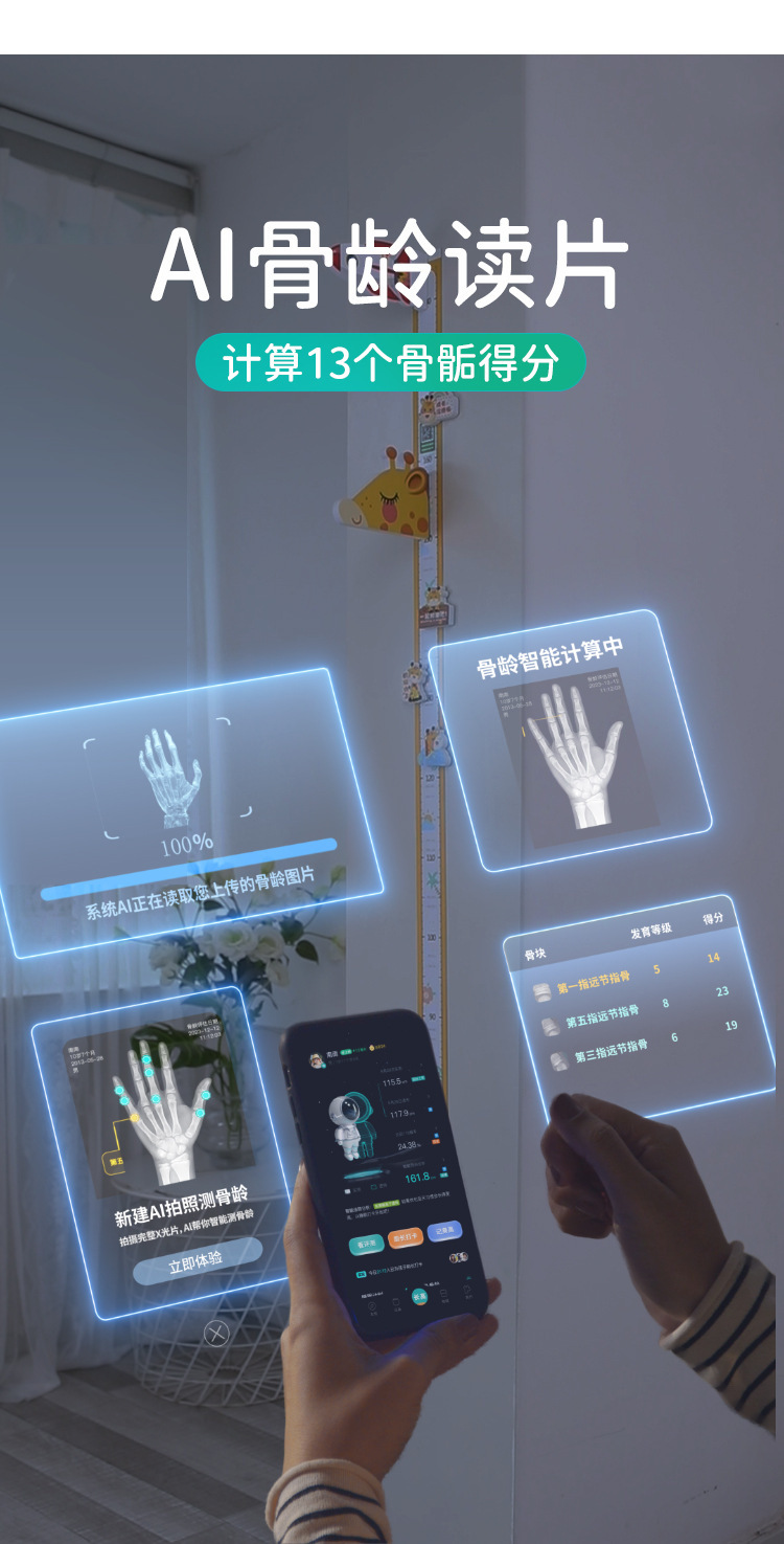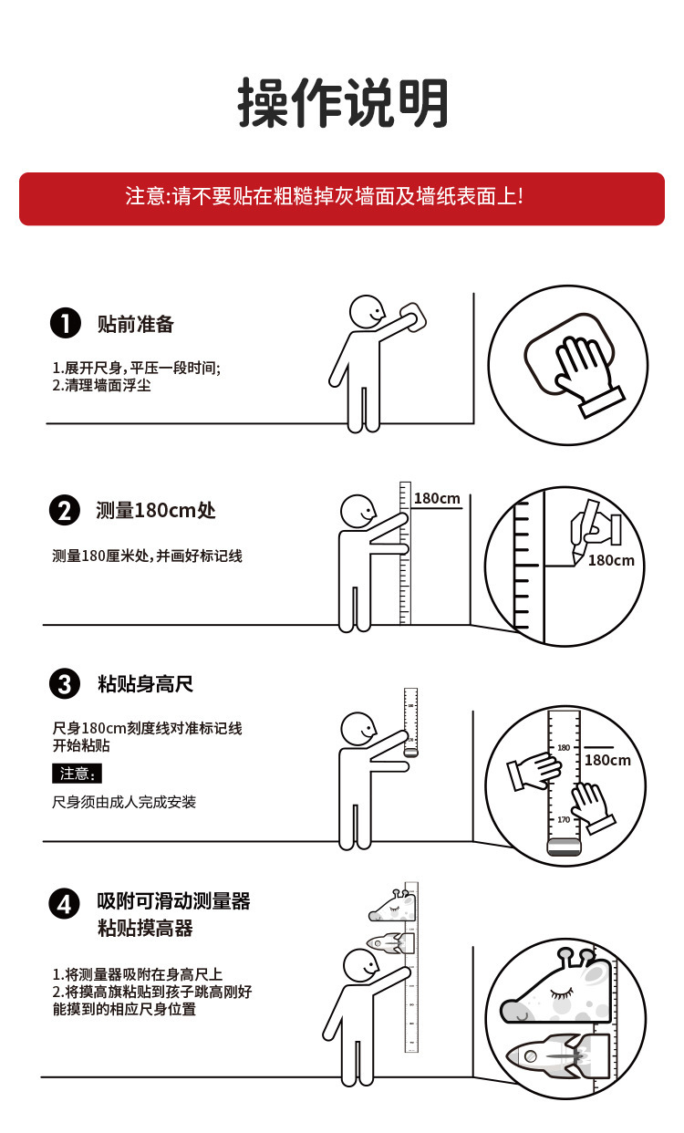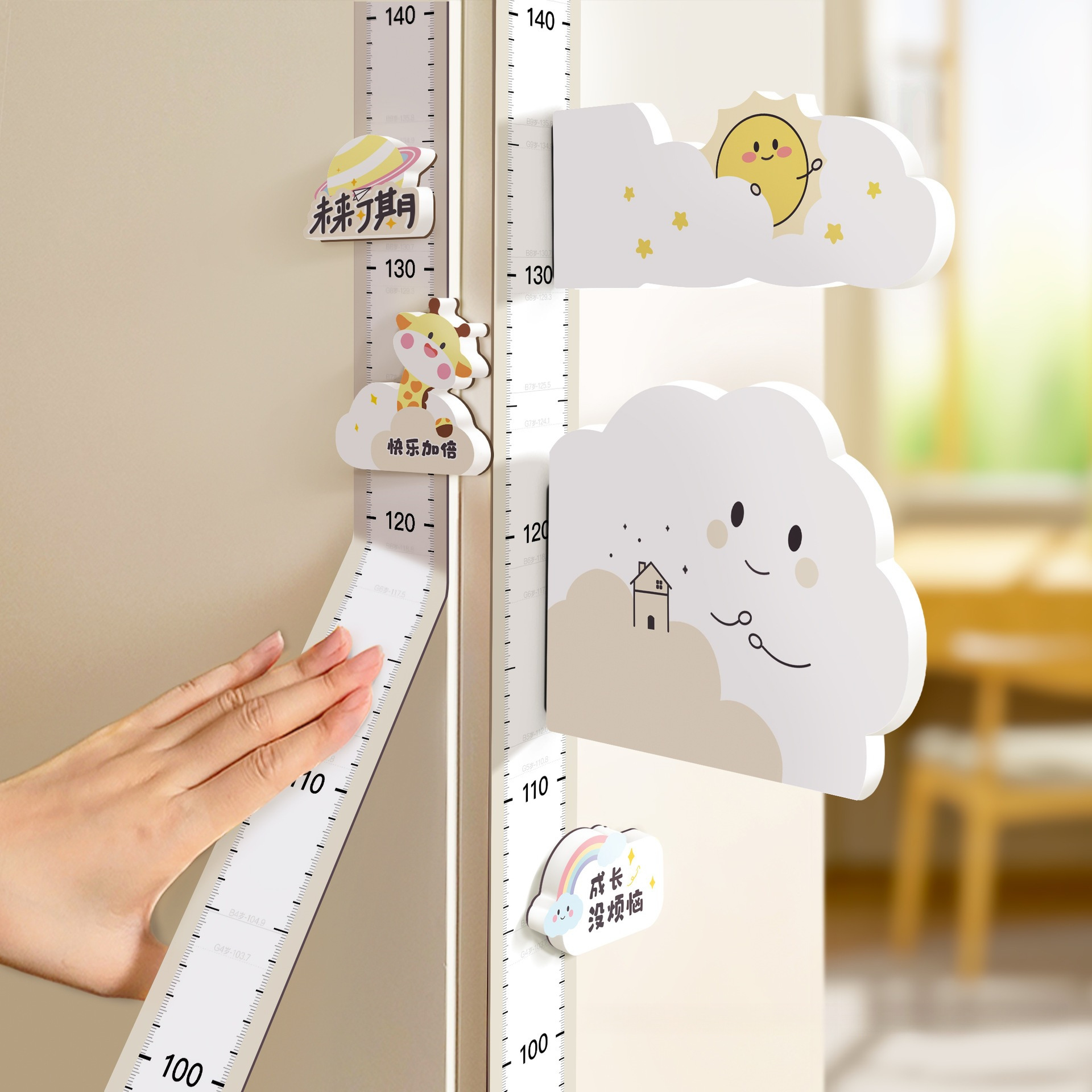 身長シールの量を測定して、壁を飾って、赤ちゃんの身長を測って、壁に貼ってください。