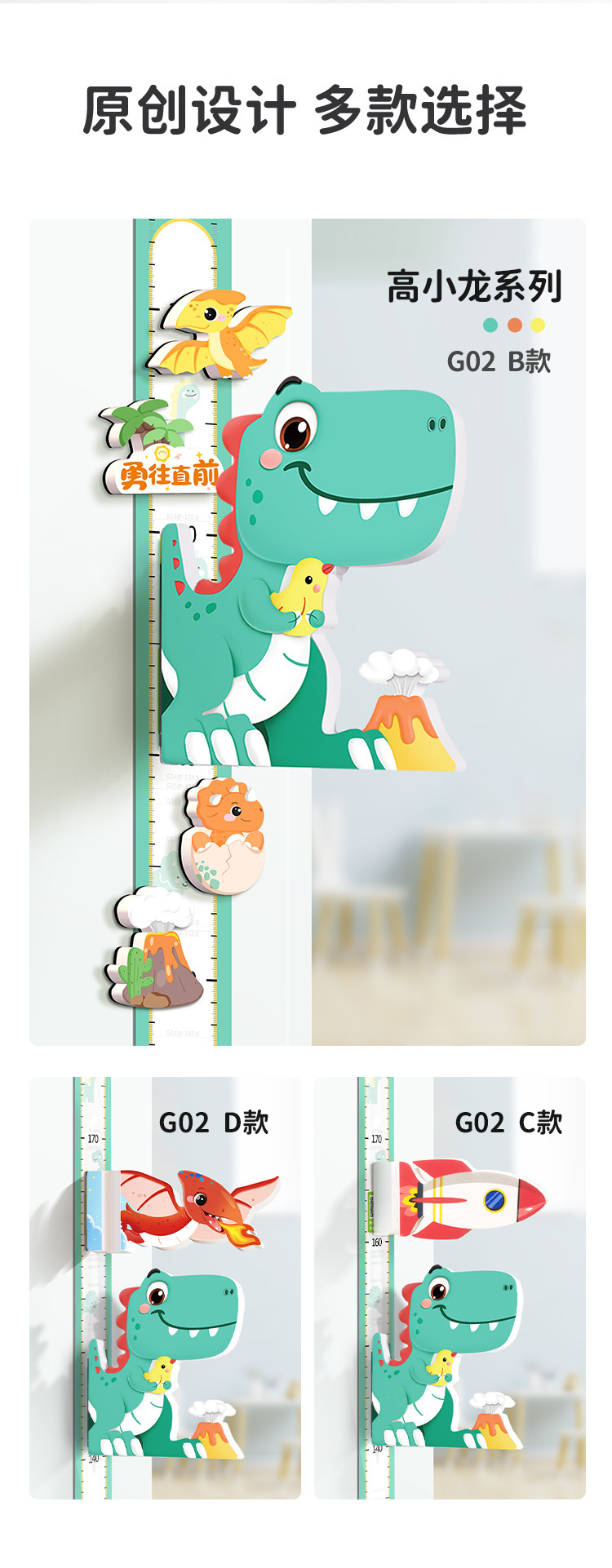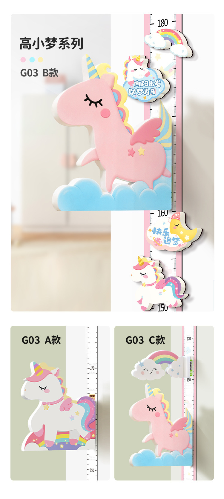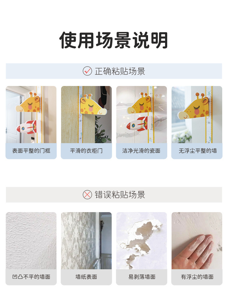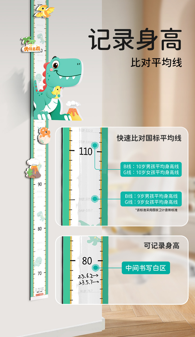 卡通宝宝身高贴测量身高尺墙贴纸可移除身高贴纸