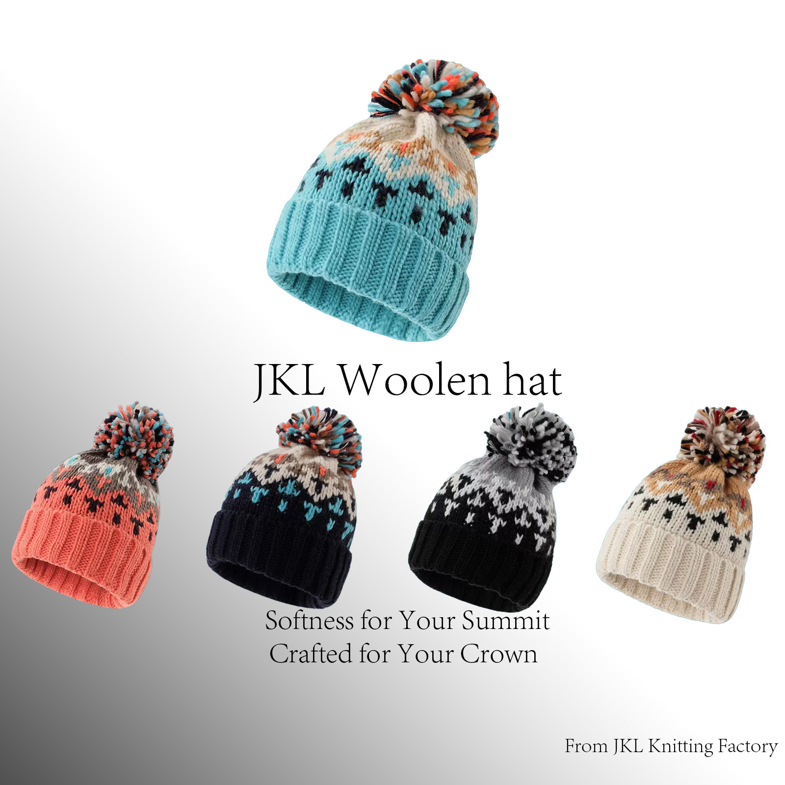 女性用帽子フェアアイル秋冬ジャカード厚く暖かいニット帽耳保護防寒帽子顔見せ小さなウール帽子