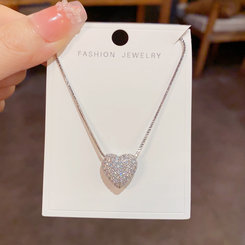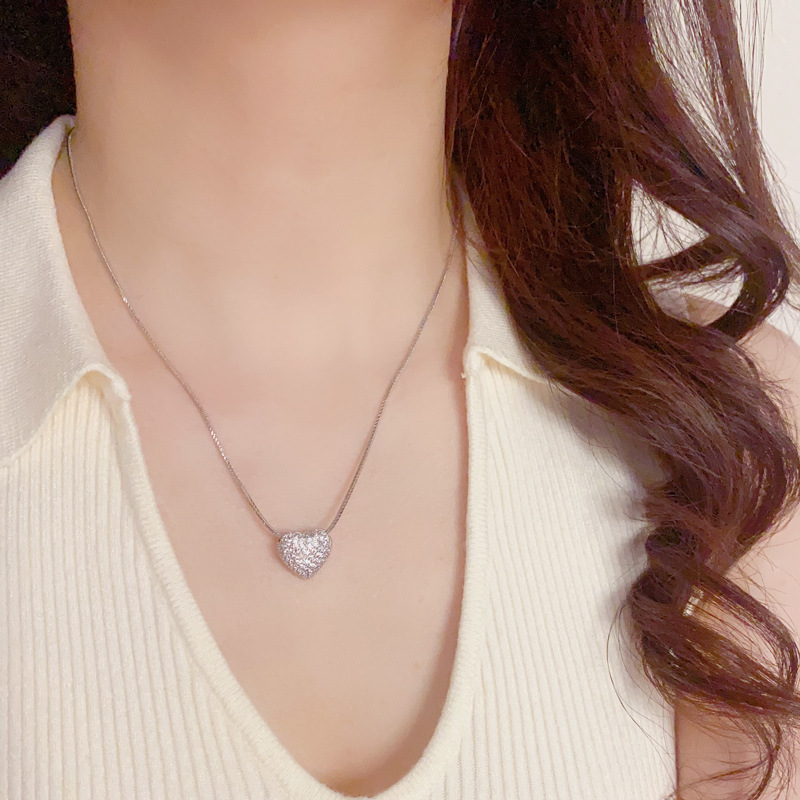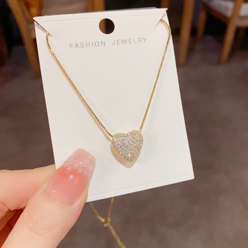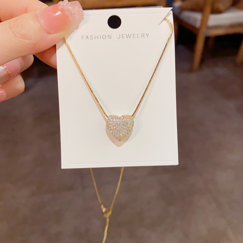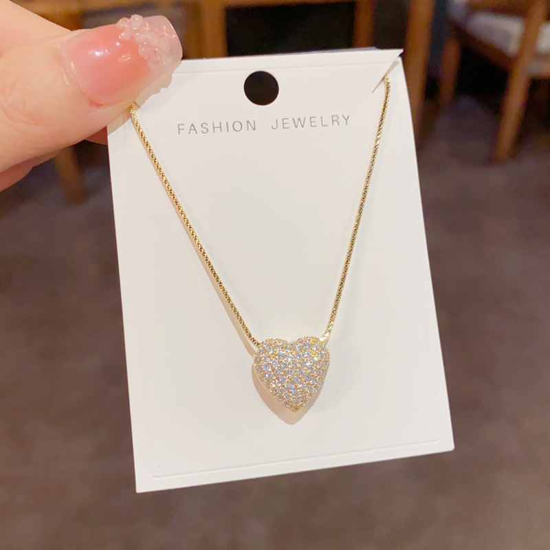 フレンチライトラグジュアリー、多用途、超光沢のあるフルダイヤモンドラブネックレス、フェミニン、ファッショナブル、レトロなデザイン、ジュエリーソースメーカー