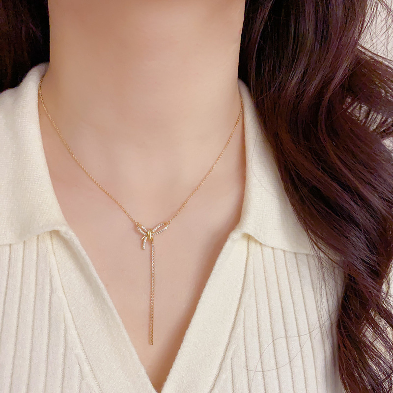 秋冬新款精致时尚百搭满钻蝴蝶结流苏项链气质轻奢简约设计感颈链