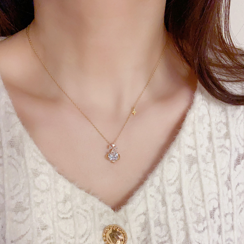 韓国版は、ピンクのジルコンのネックレスを愛しています。