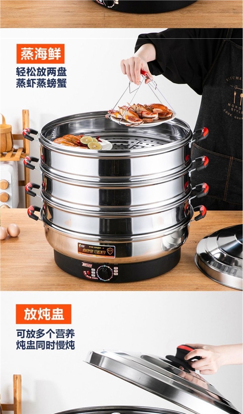 电蒸锅家用大容量多层电蒸笼多功能蒸菜馒头三层不锈钢蒸汽锅